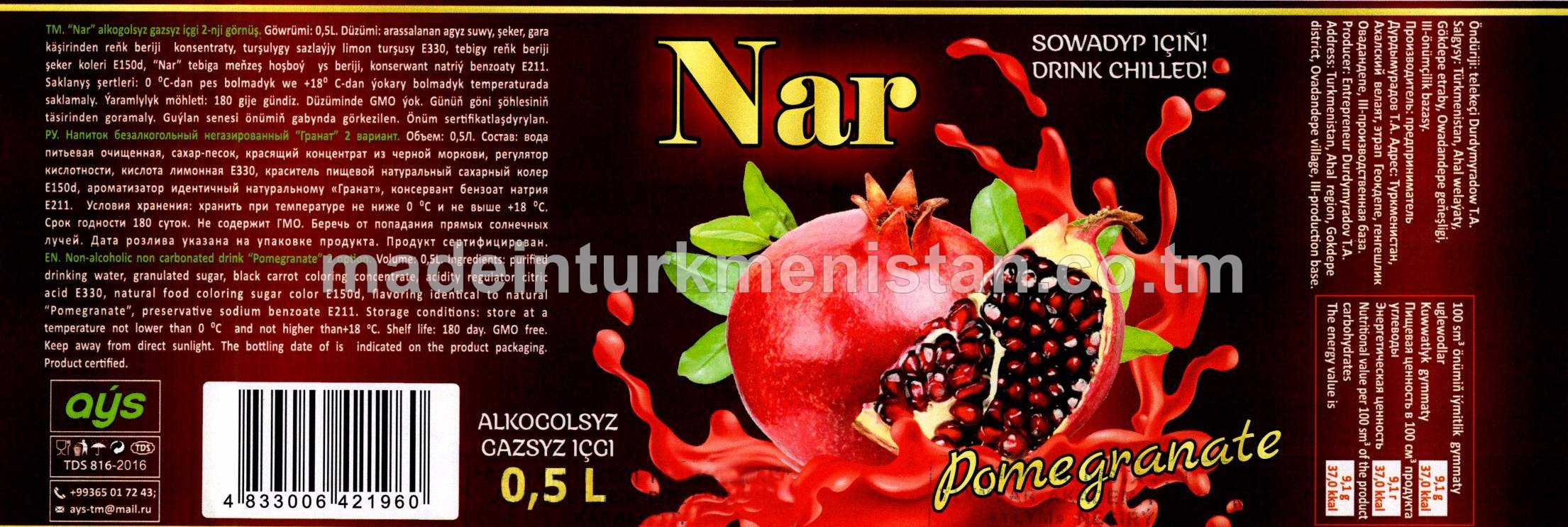 "Nar" alkogolsyz gazsyz içgi(2-nji görnüş) gyzyl etiketka