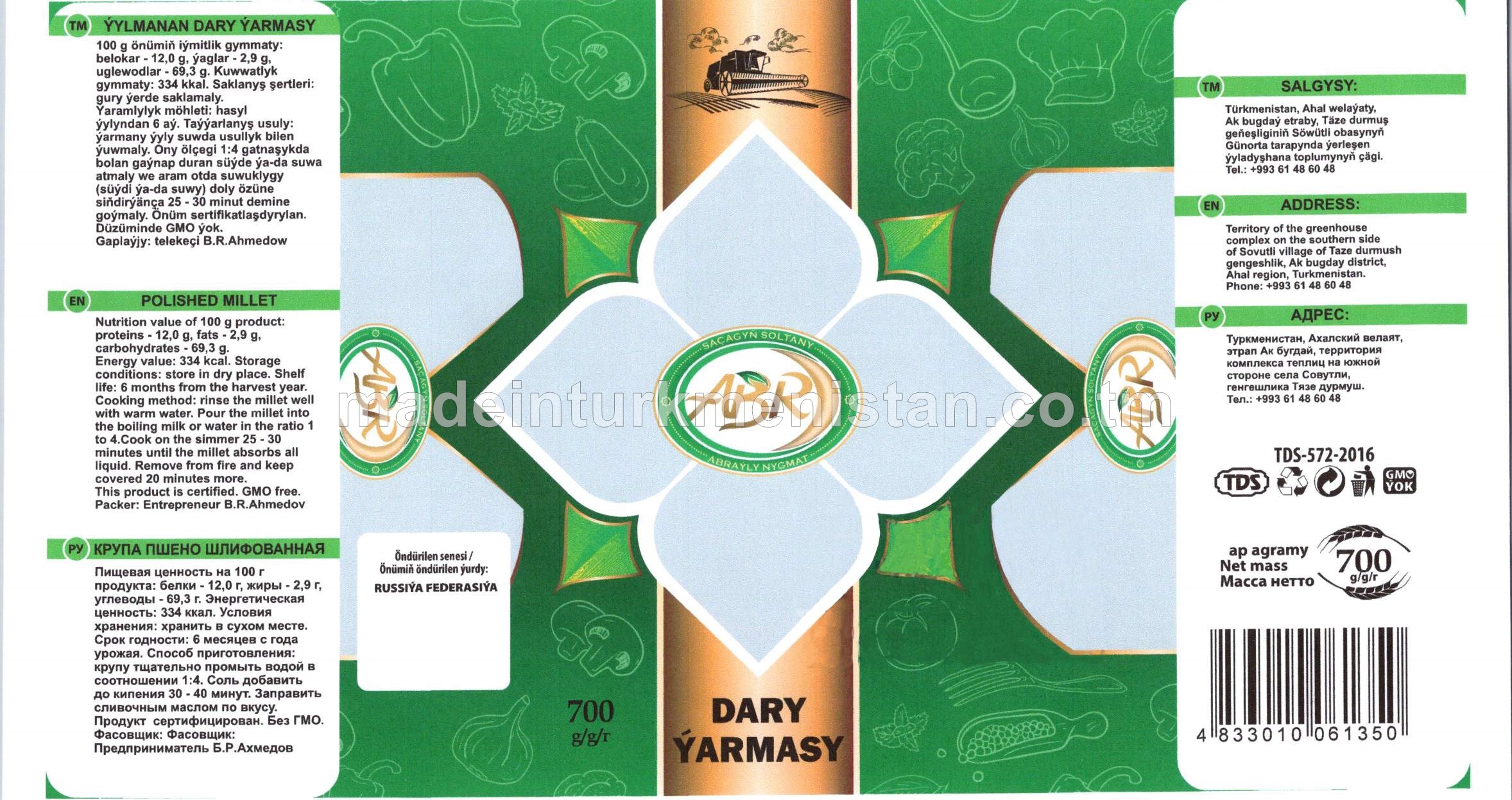 «Türkmenistanda öndürildi»: türkmen brendleri, önüm öndürijileri, eksportýerlary we bilermenleri hakynda giňişleýi katalog. Saýtda milli önümler we üpjün edijiler hakynda doly, ygtybarly we täzelenip durýan maglumatlar ýerleşdirilýär.