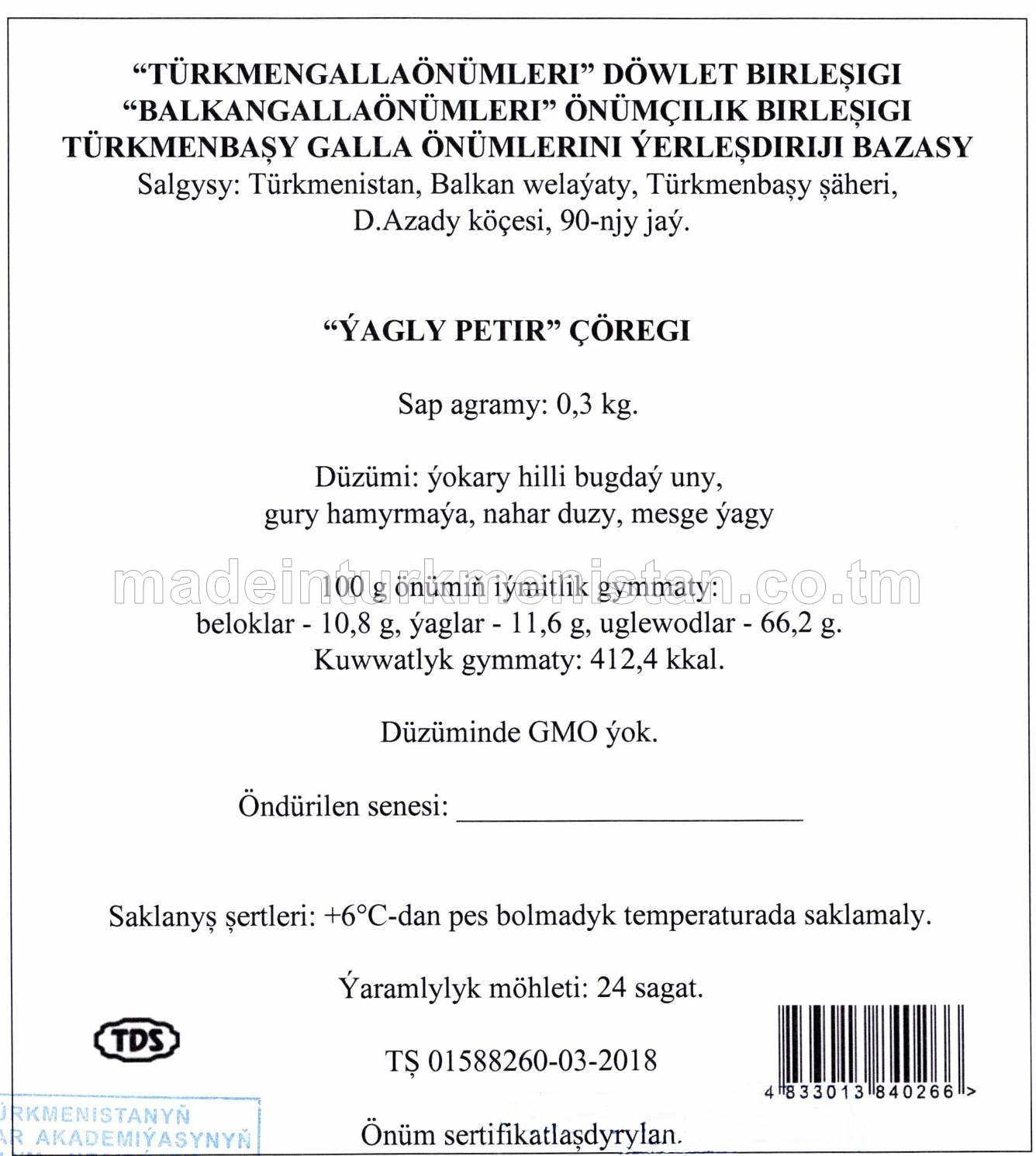 "Ahal" tamdyr çöregi, birinji hilli