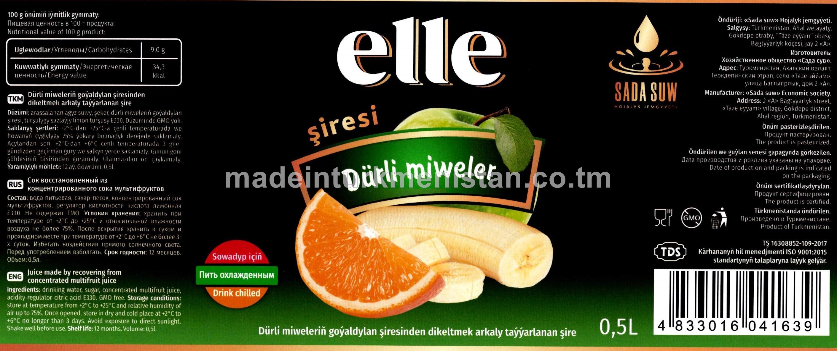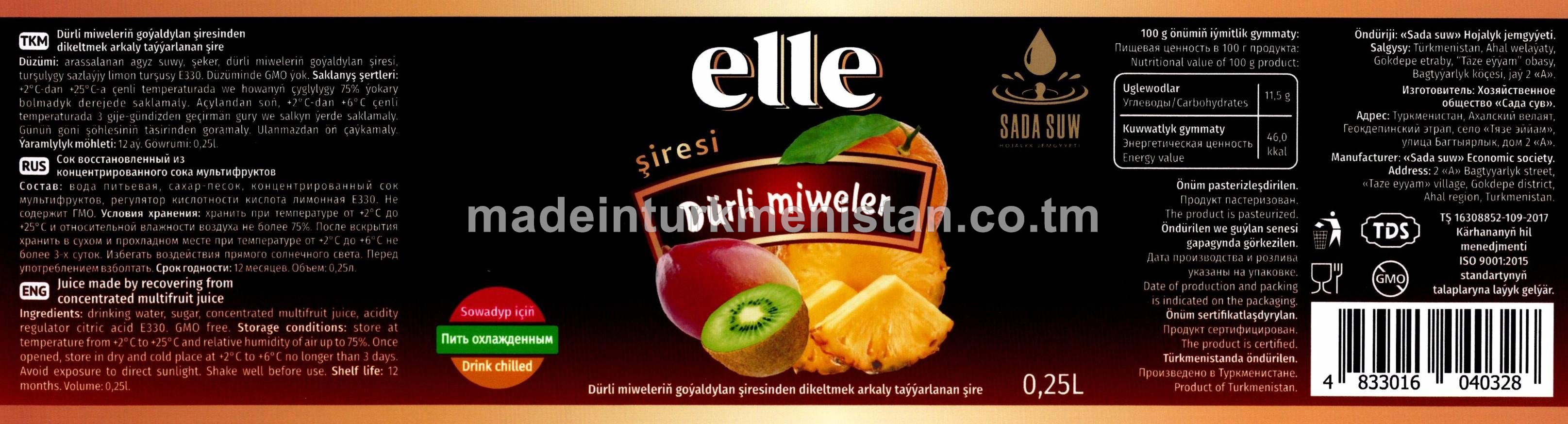 Multifrukt dürli miweleriniň goýaldylan şiresinden dikeltmek arkaly taýýarlanan şire
