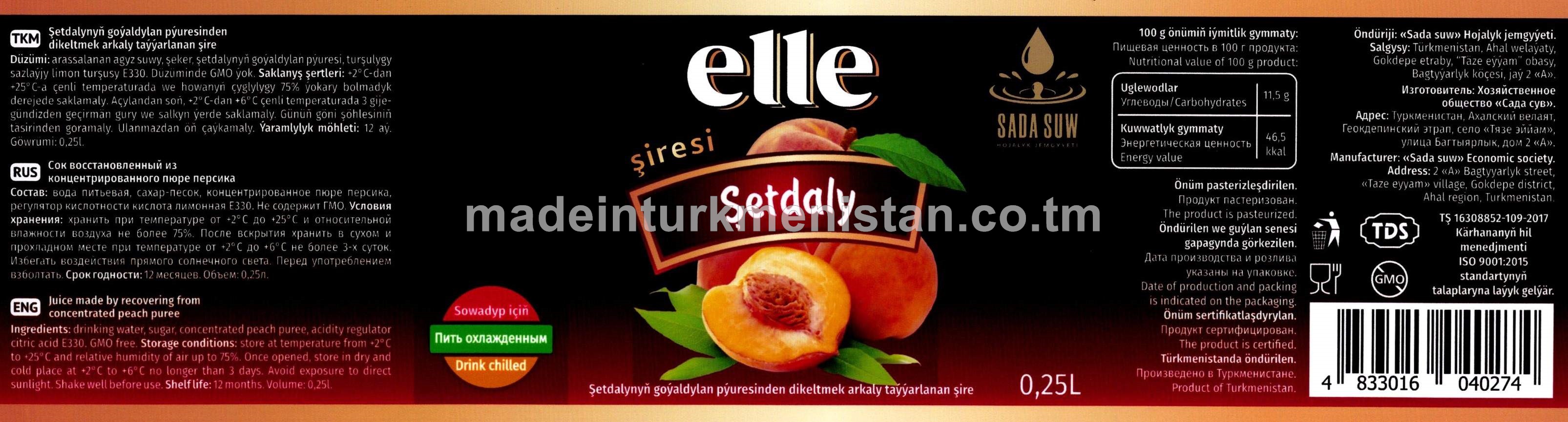 Şetdalynyň goýaldylan pýuresinden dikeltmek arkaly taýýarlanan şire