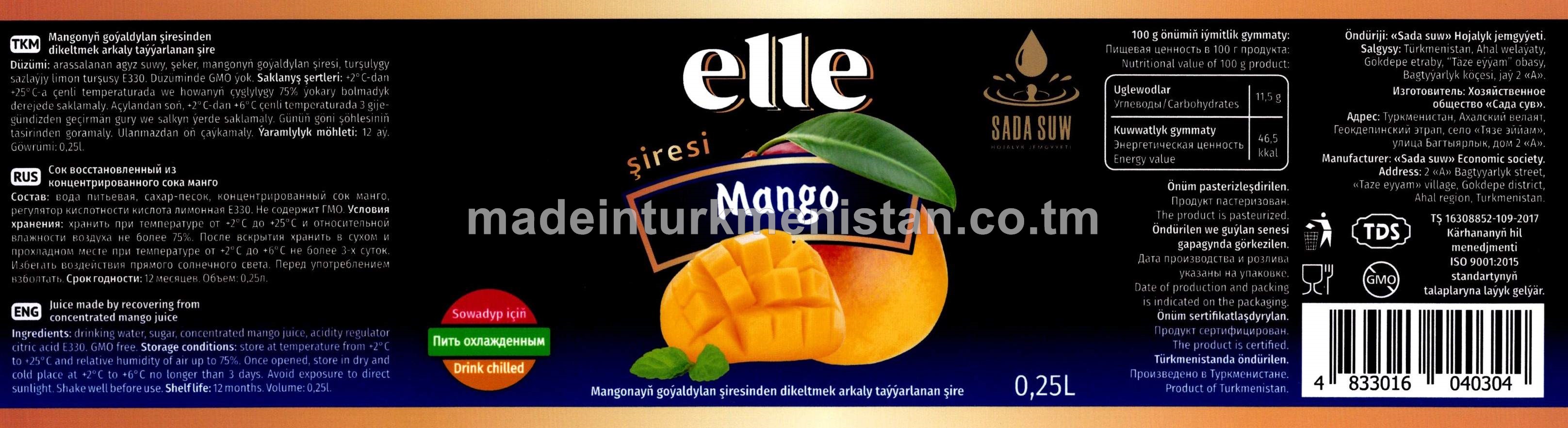 Mangonyň goýaldylan şiresinden dikeltmek arkaly taýýarlanan şire