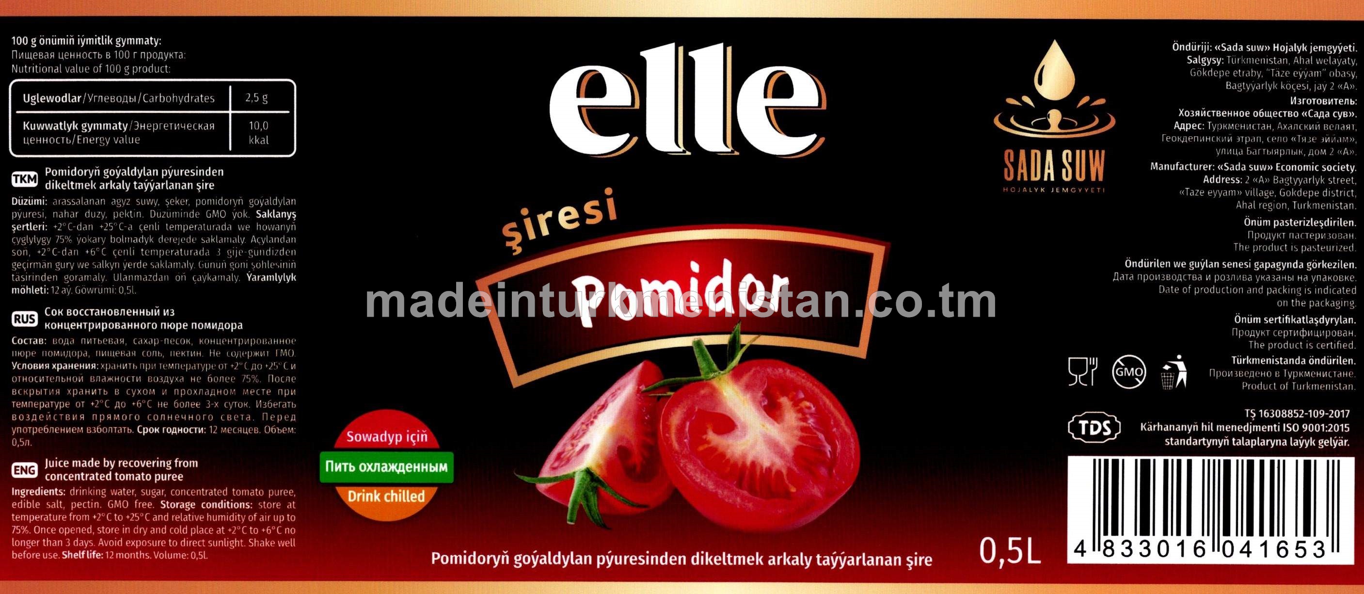 Pomidoryň goýaldylan pyuresinden dikeltmek arkaly taýýarlanan şire