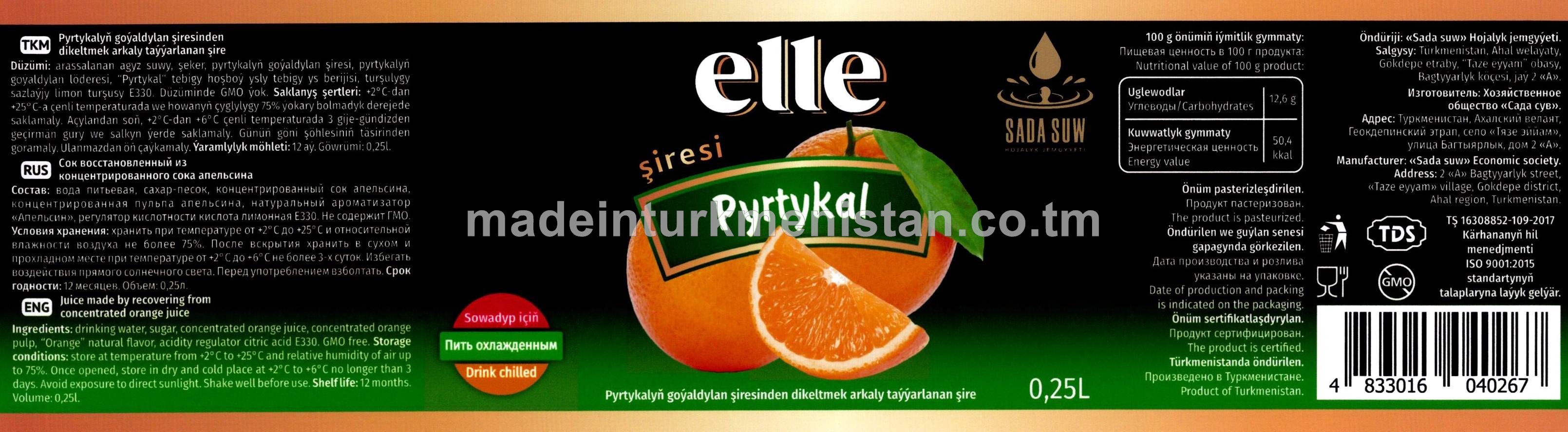Pyrtykalyň goýaldylan şiresinden dikeltmek arkaly taýýarlanan şire
