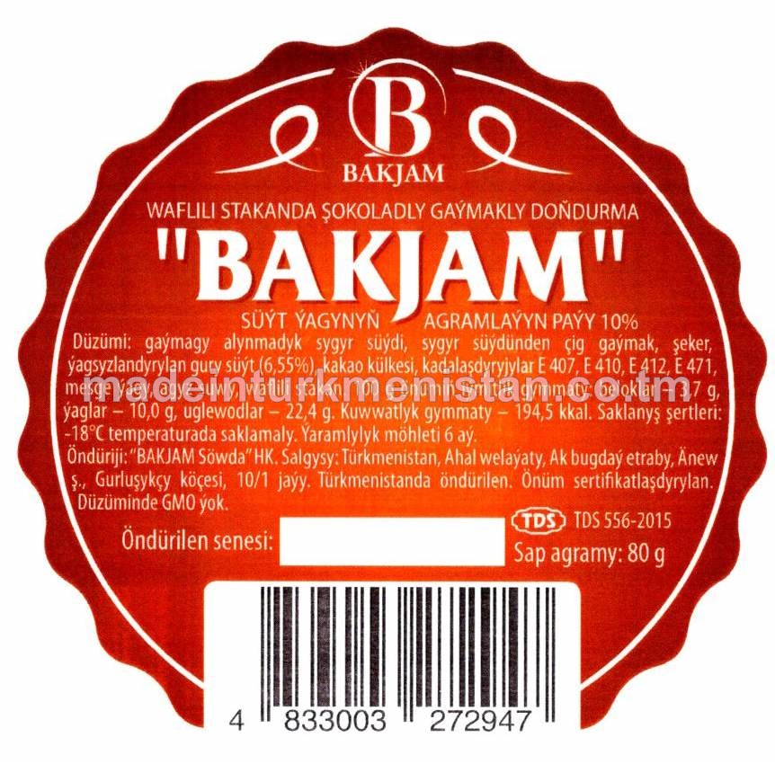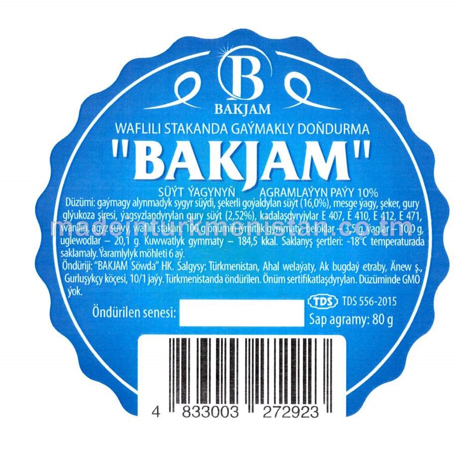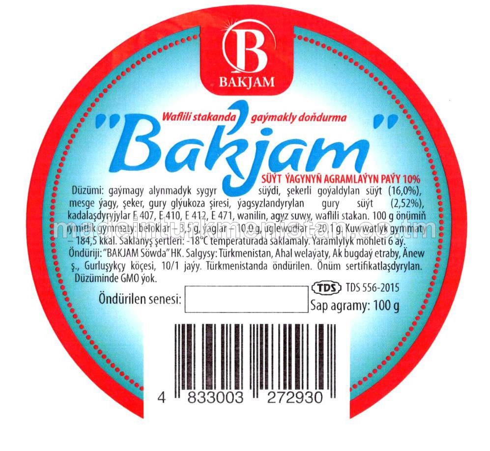 "BAKJAM" Waflili stakanda gaýmakly doňdurma. Süýt ýagynyň agramlaýyn paýy 10%