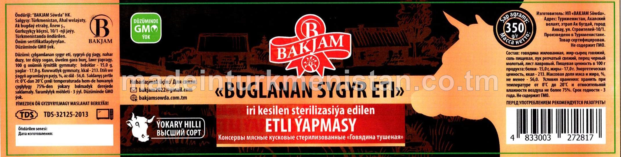 "Buglanan sygyr eti" iri kesilen sterilizasiýa edilen etli ýapmasy