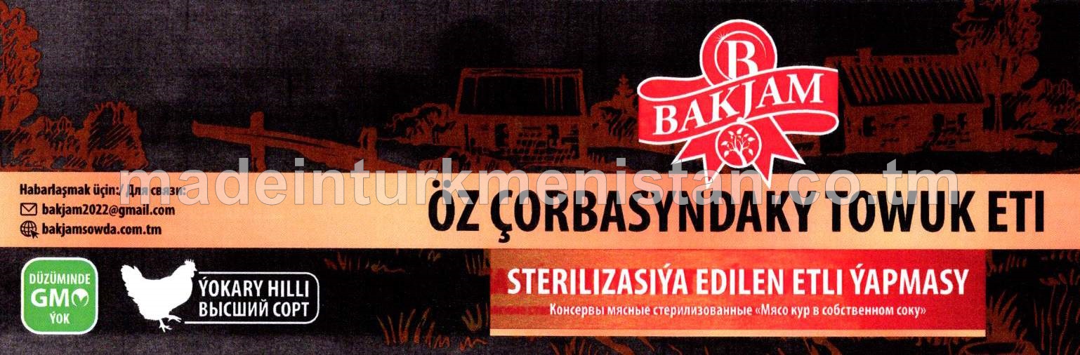 Öz çorbasyndaky towuk eti, sterilizasiýa edilen etli ýapmasy
