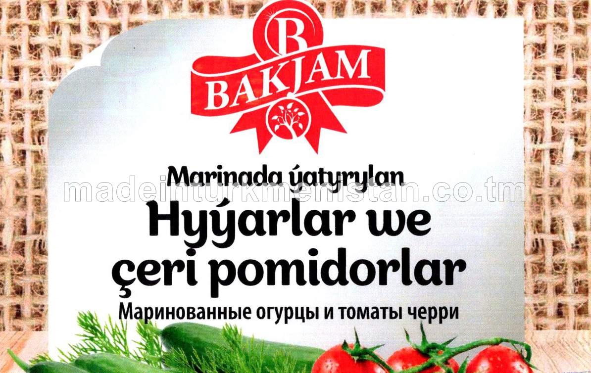 Marinada ýatyrylan hyýarlar we çeri pomidorlar. Birinji hilli. Gowşak turşy