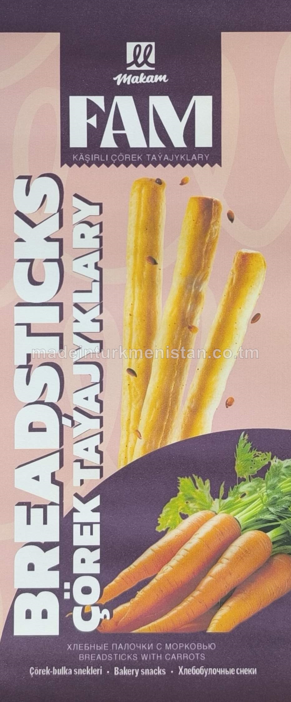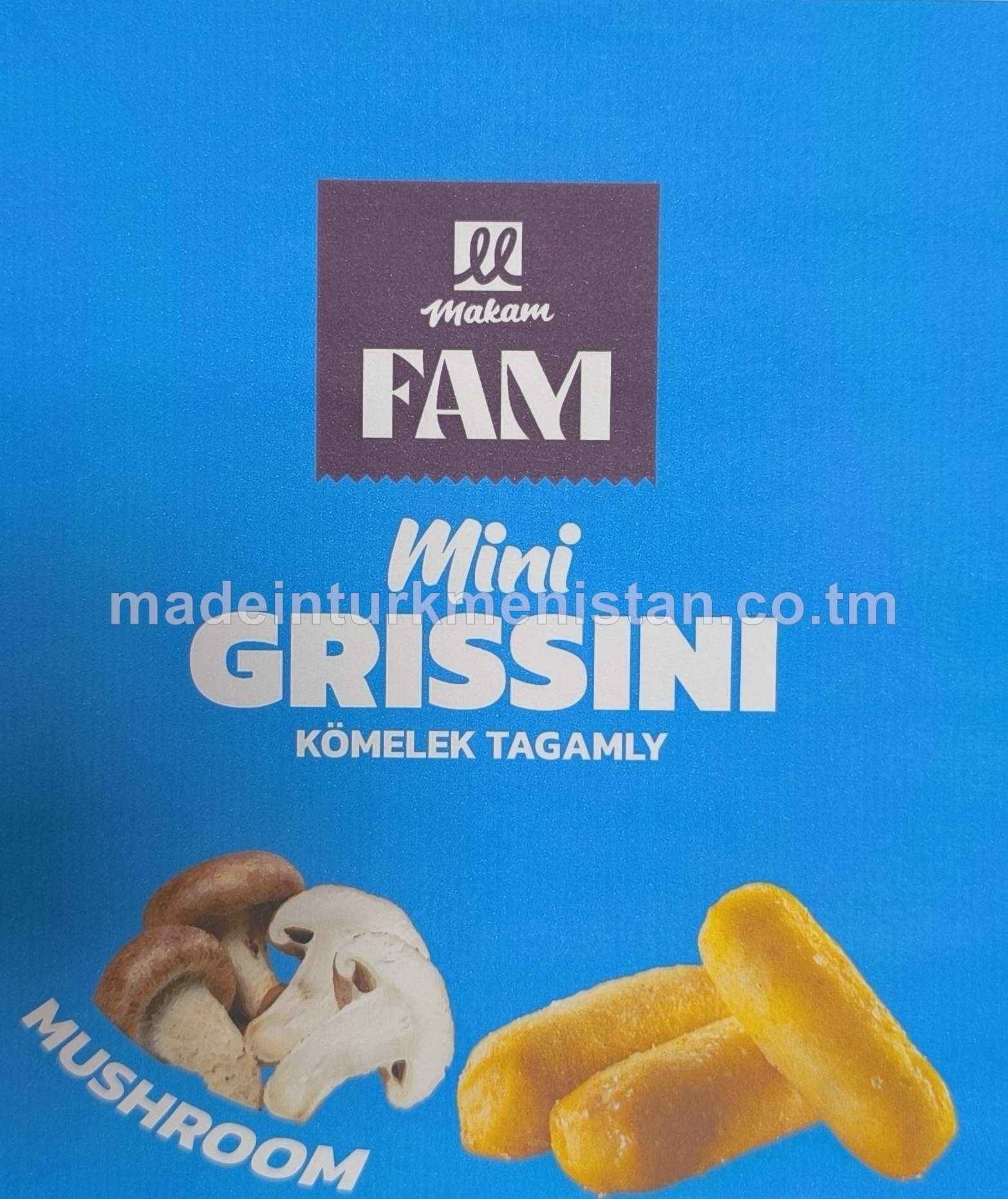 "Fam" kömelek tagamly mini grissini çörek-bulka snekleri, ýokary hilli bugdaý unundan (30g*80sany)