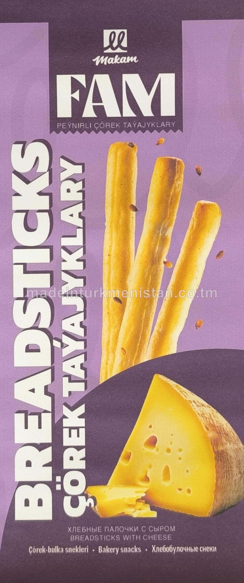 "Fam" peýnir tagamly mini grissini çörek-bulka snekleri. Ýokary hilli bugdaý unundan
