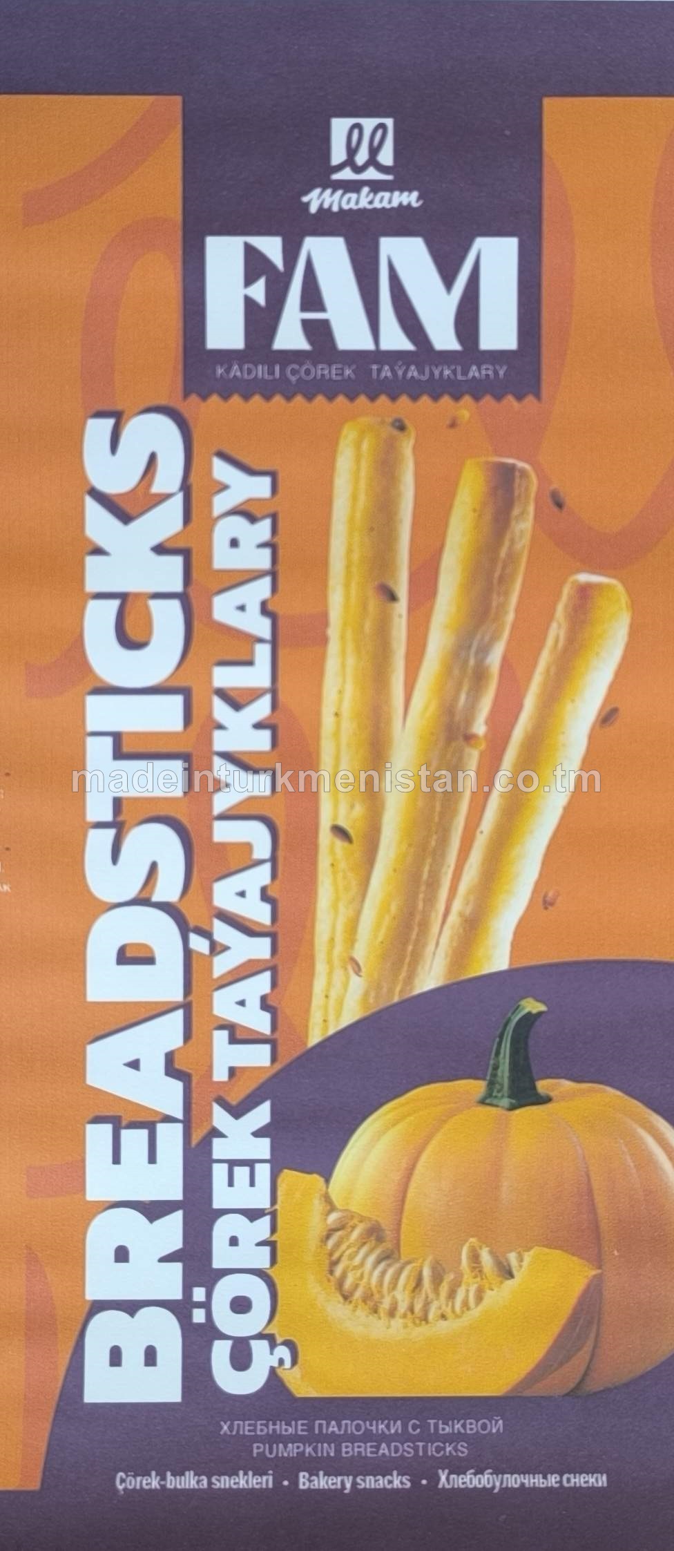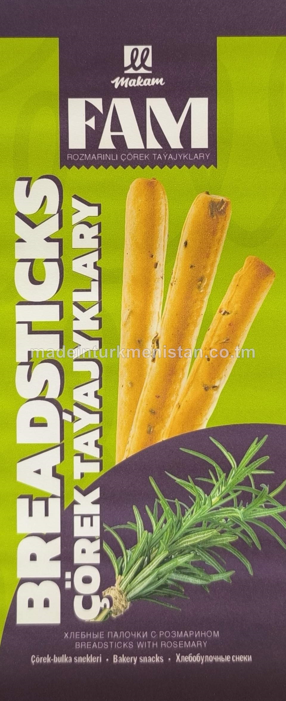 "Fam" kömelek tagamly mini grissini çörek-bulka snekleri. Ýokary hilli bugdaý unundan