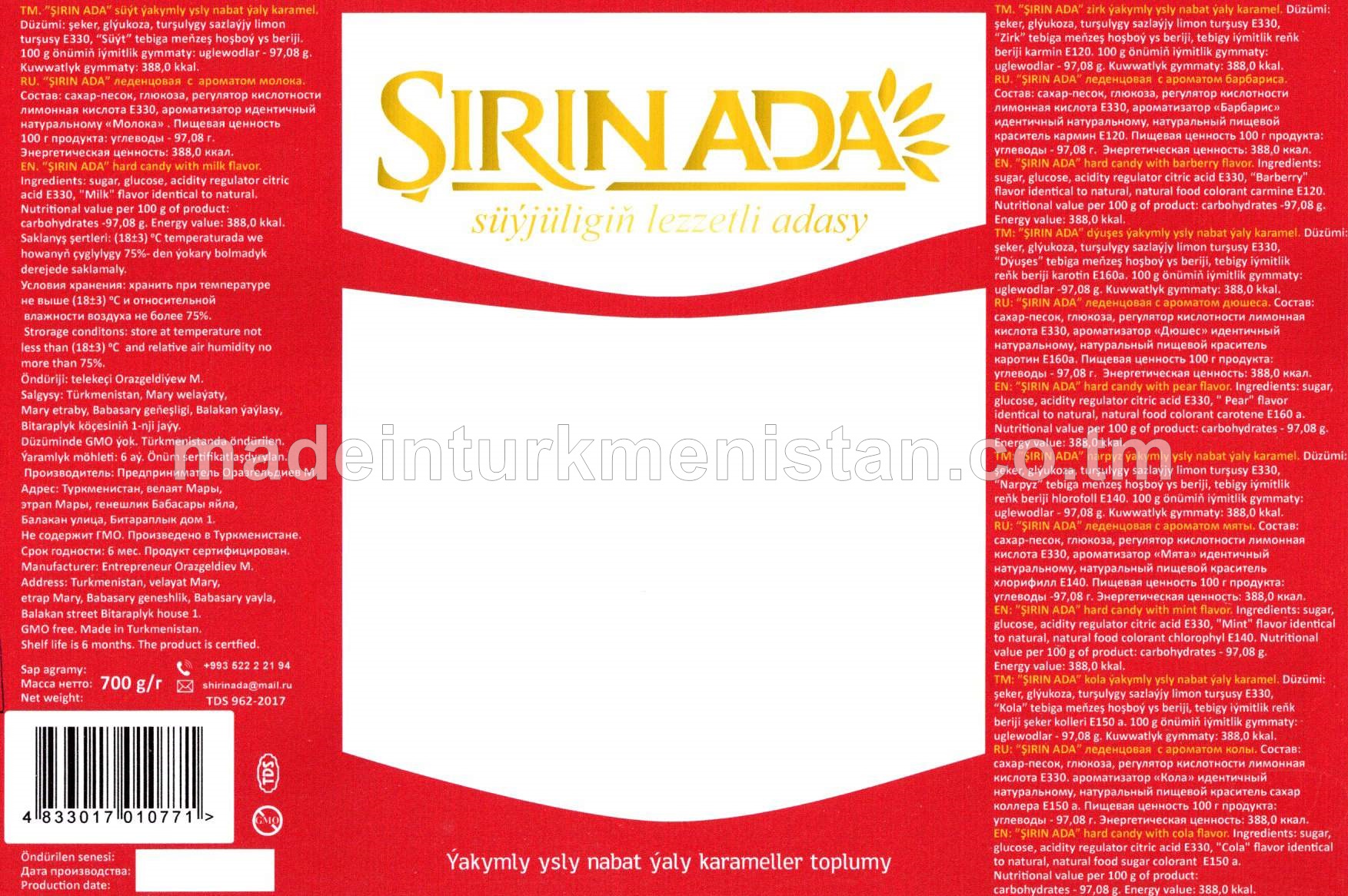 Ýakymly ysly nabat ýaly karameller toplumy (zirk, dýuşes, narpyz, kola)