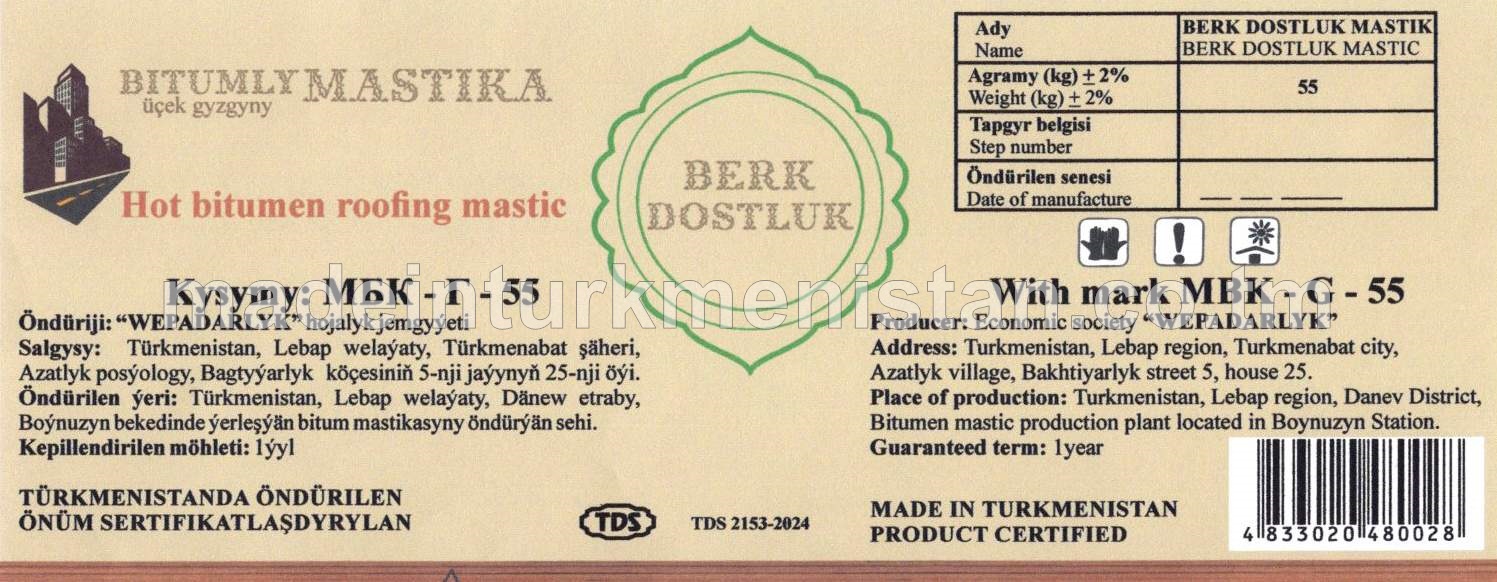 Üçek gyzgyny bitumly mastika. Kysymy: МБК-Г-55