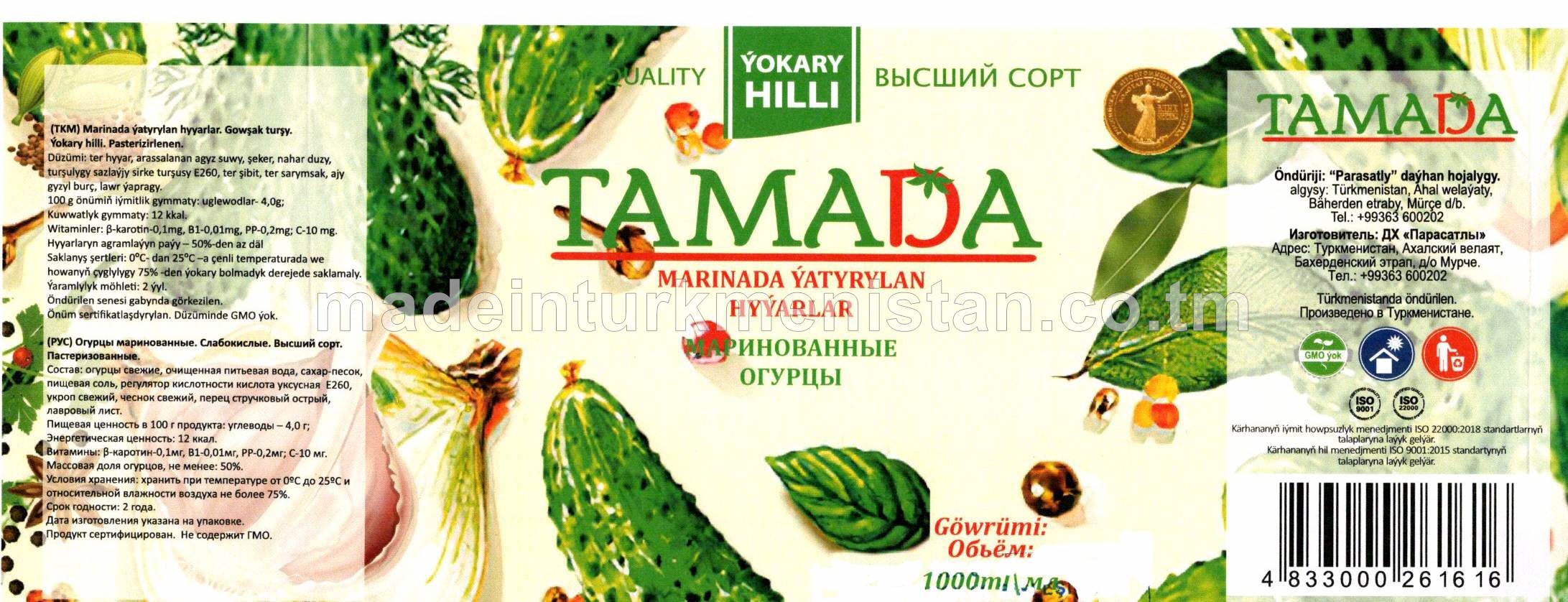 Marinada ýatyrylan hyýarlar. Gowşak turşusy