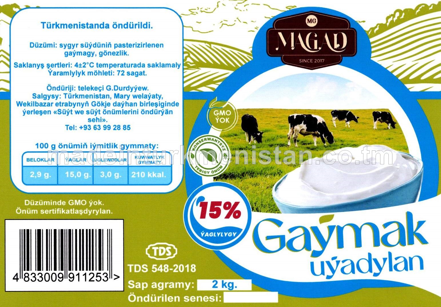 Gaýmak uýaldylan. Ýaglylygy 15%
