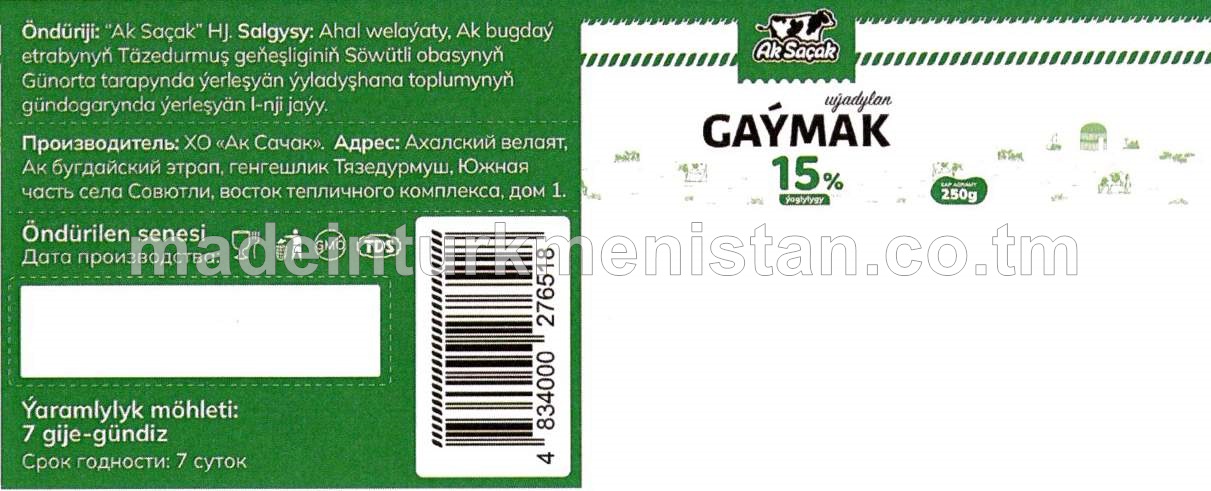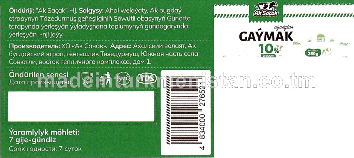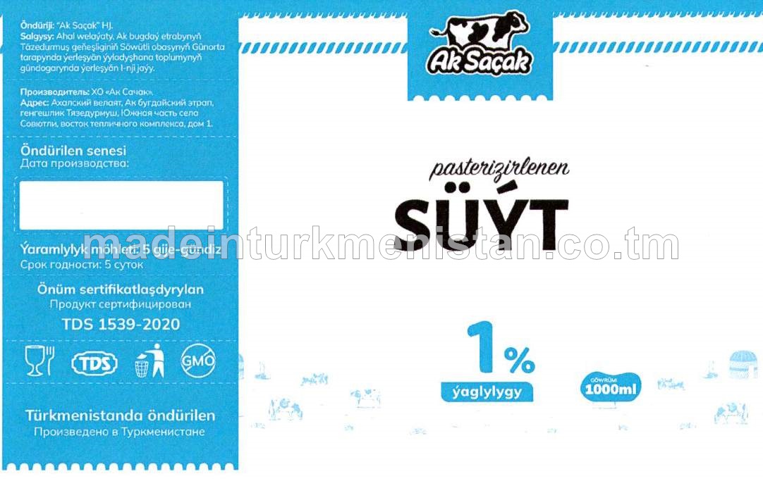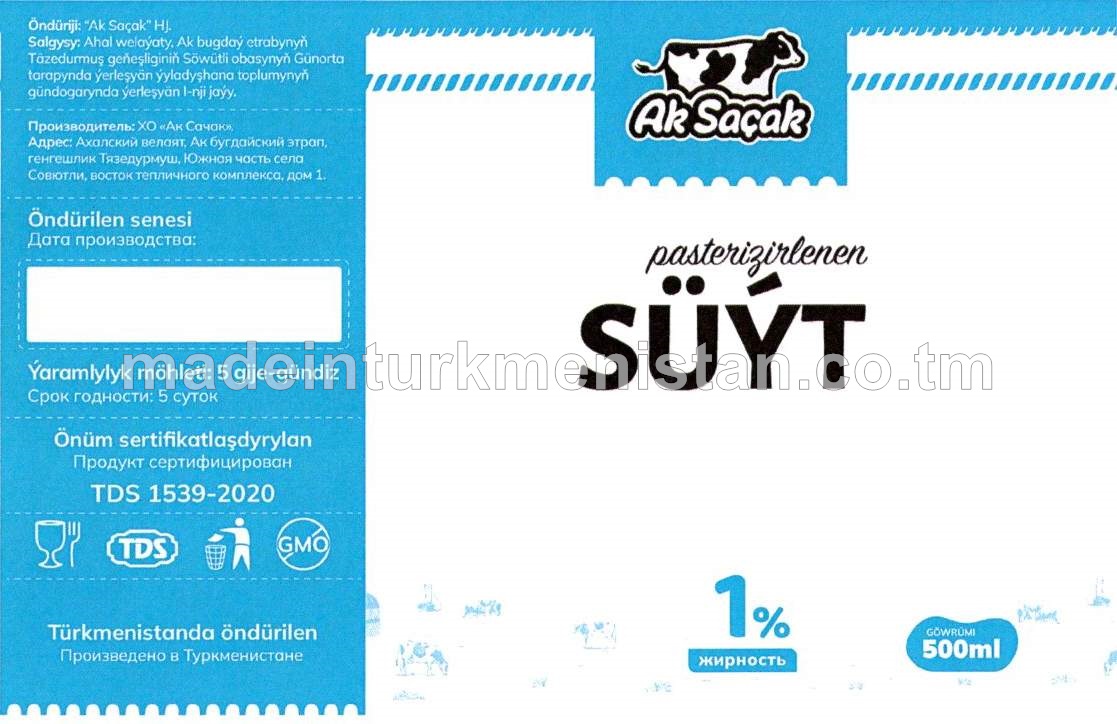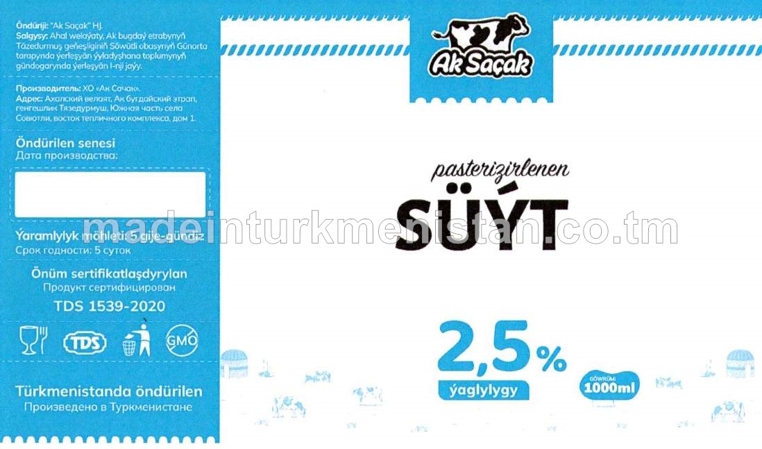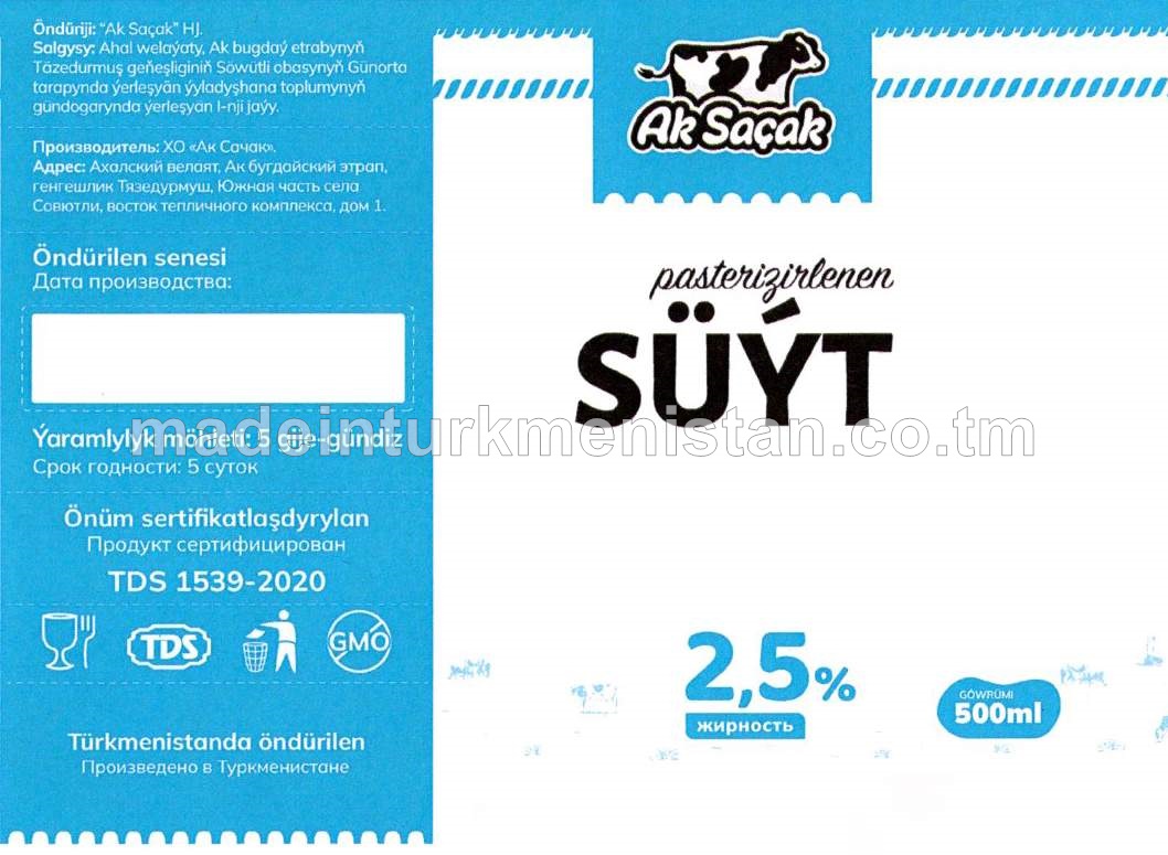 Pasterizirlenen süýt. Ýaglygy 2.5%