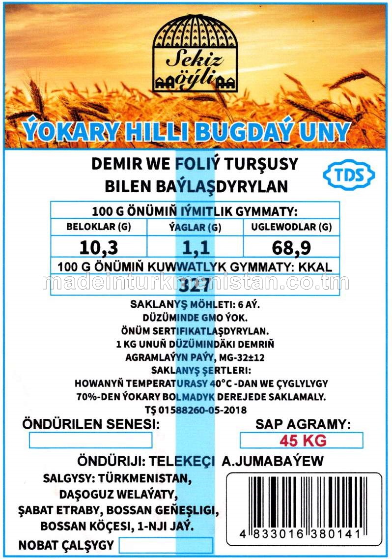 Ýokary hilli bugdaý uny, demir we foliý turşusy bilen baylaşdyrylan