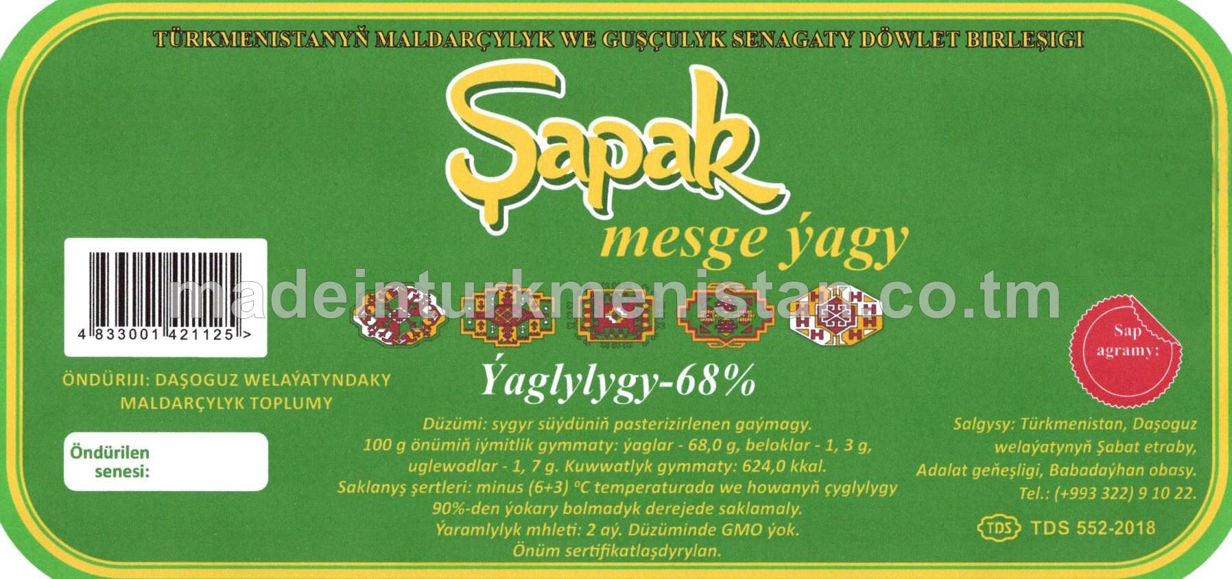 "Şapak" mesge ýagy, ýaglylygy 68%