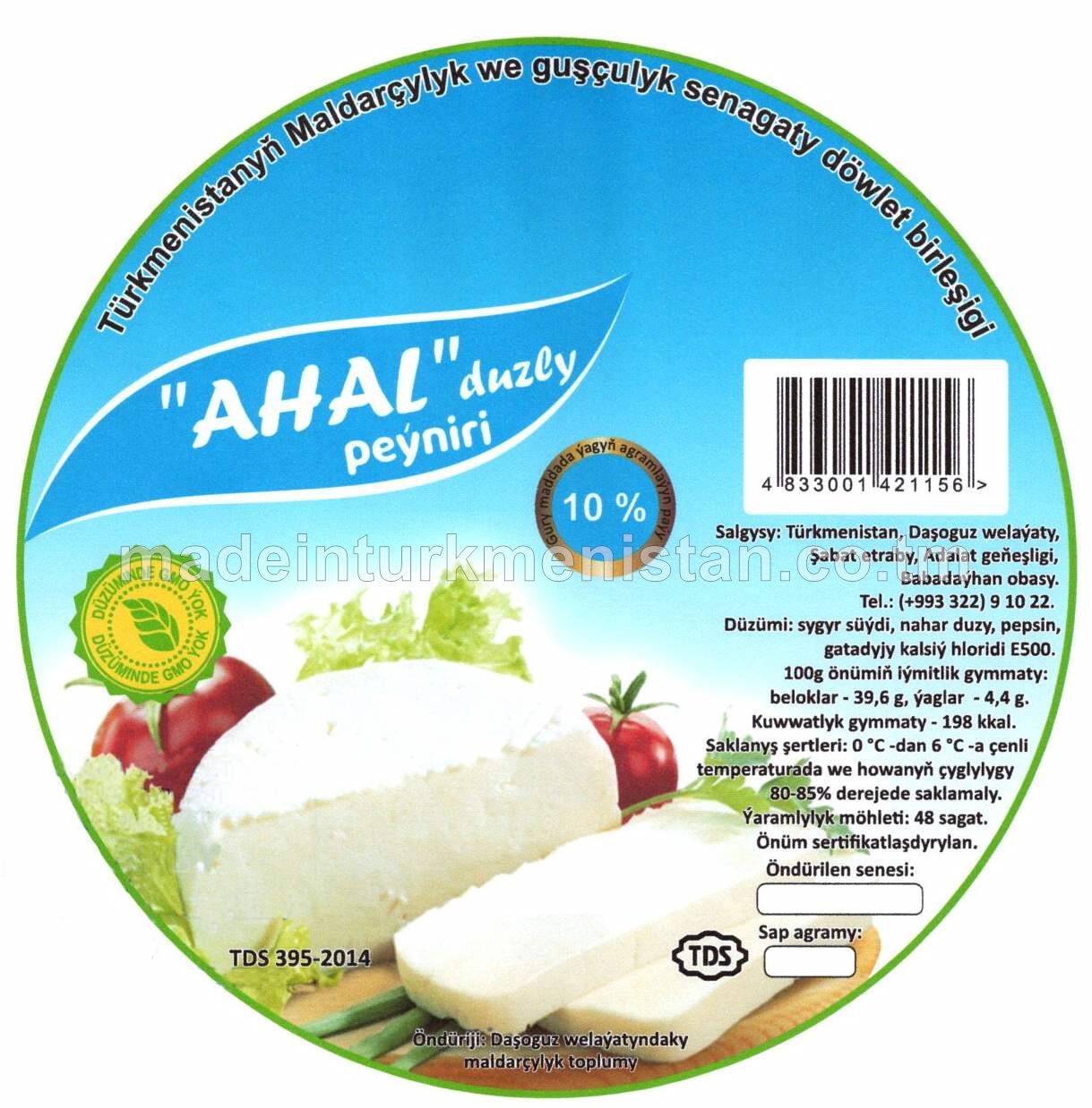 "Ahal" duzly peýnir, ýaglylygy 10%