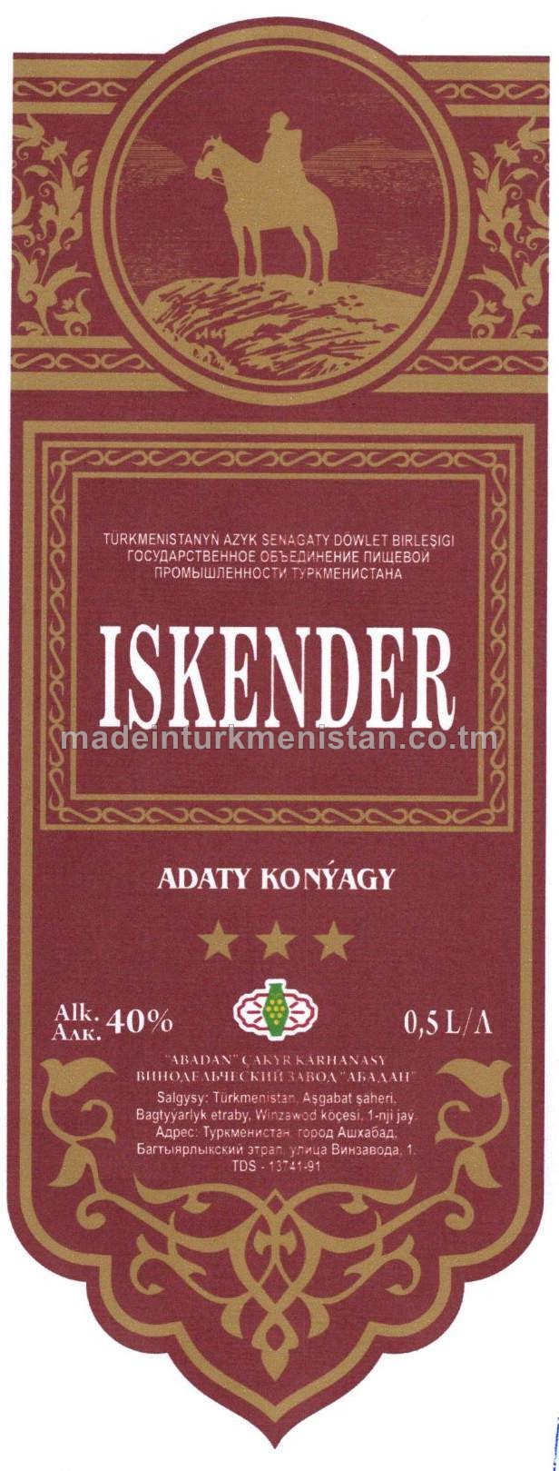 "Bäş bedew" saklanan konýagy. Alk: 40%
