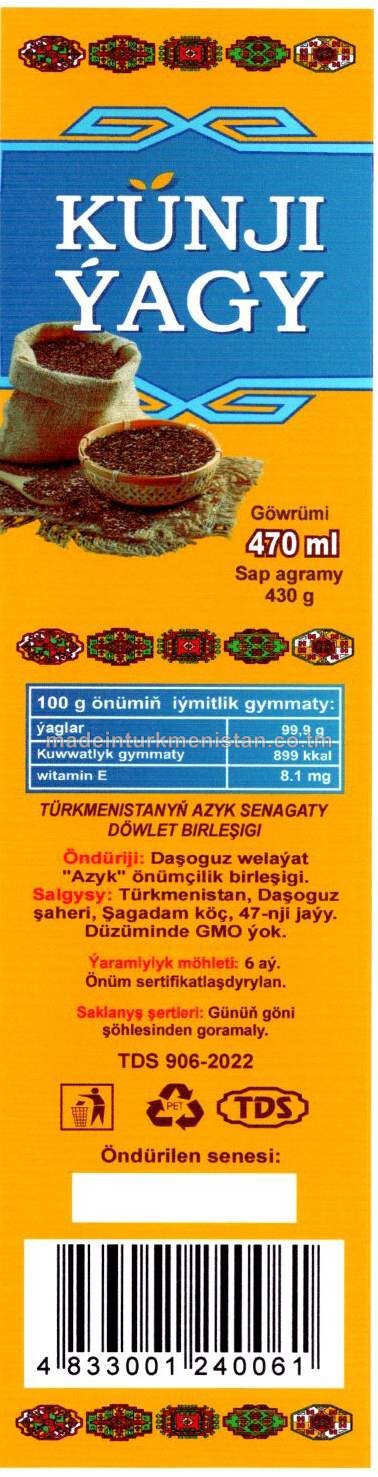 Arassalanan pagta ýagy, dezodorirlenmedik. Birinji hilli