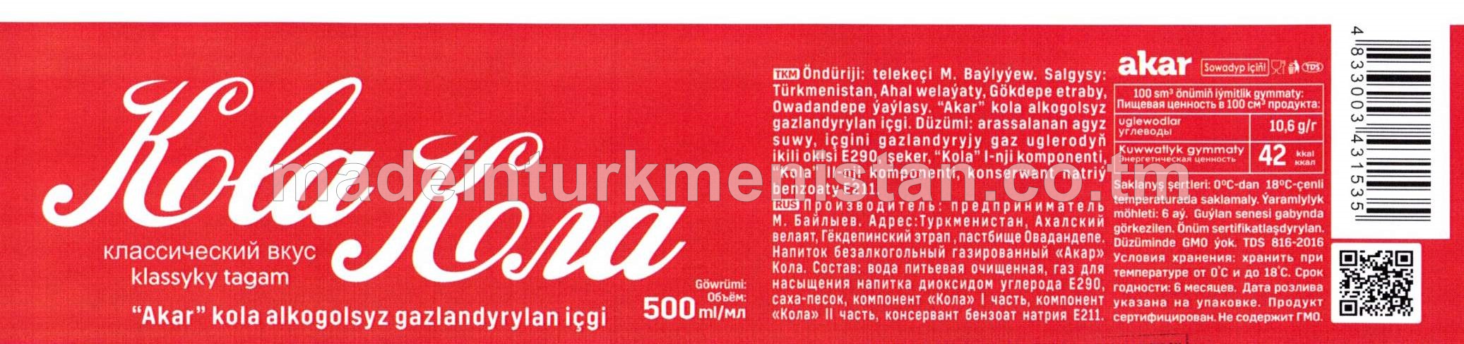 “Akar” kola alkogolsyz gazlandyrylan içgi