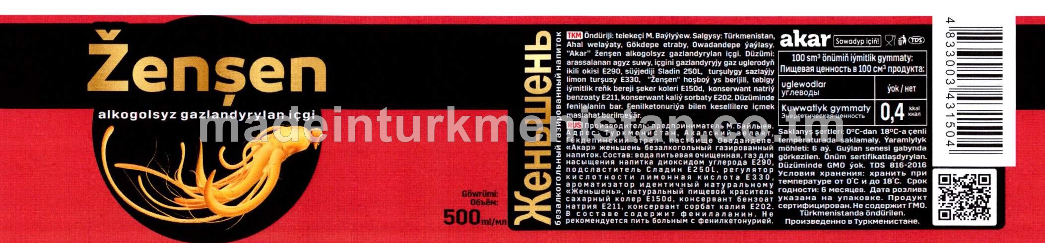 “Akar” ženşen alkogolsyz gazlandyrykan içgi