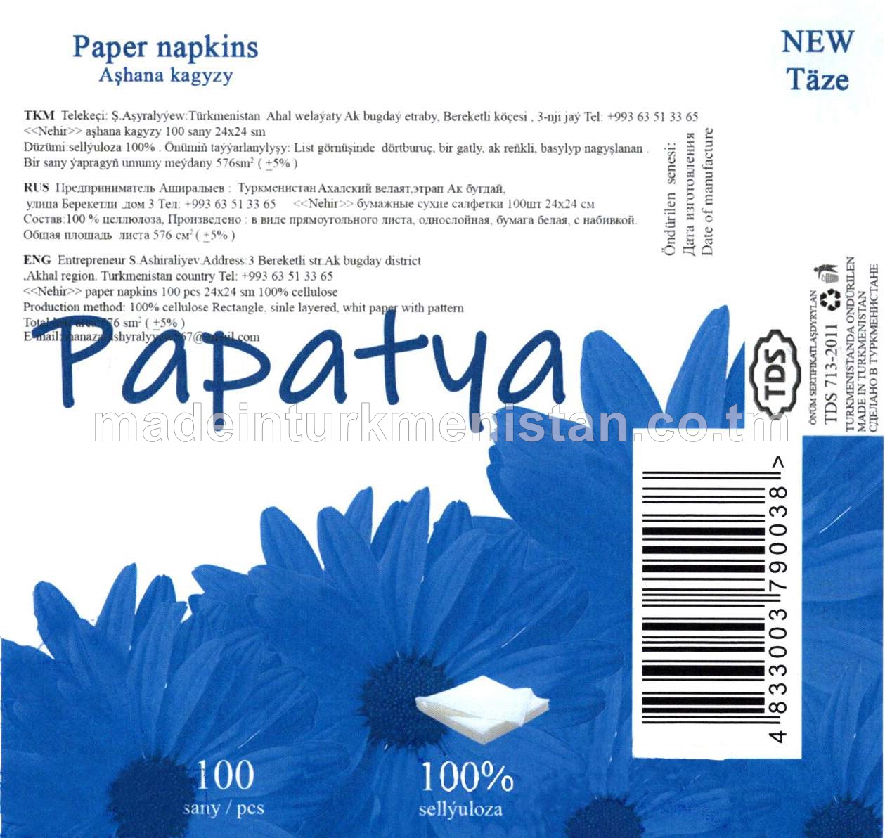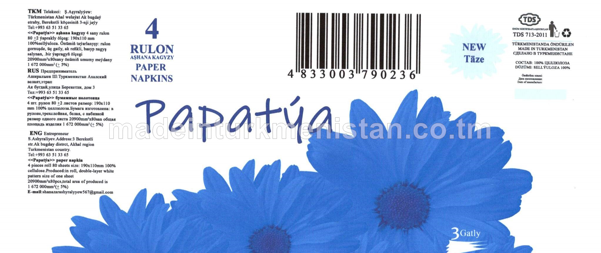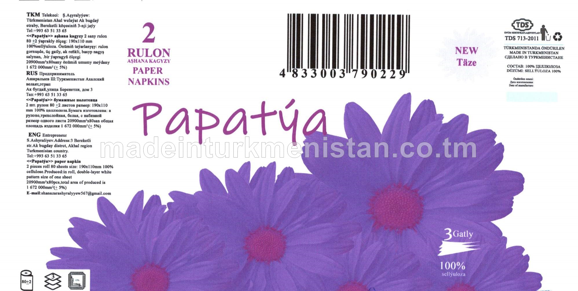 Aşhana kagyzy, 3 gatly, 190x110mm