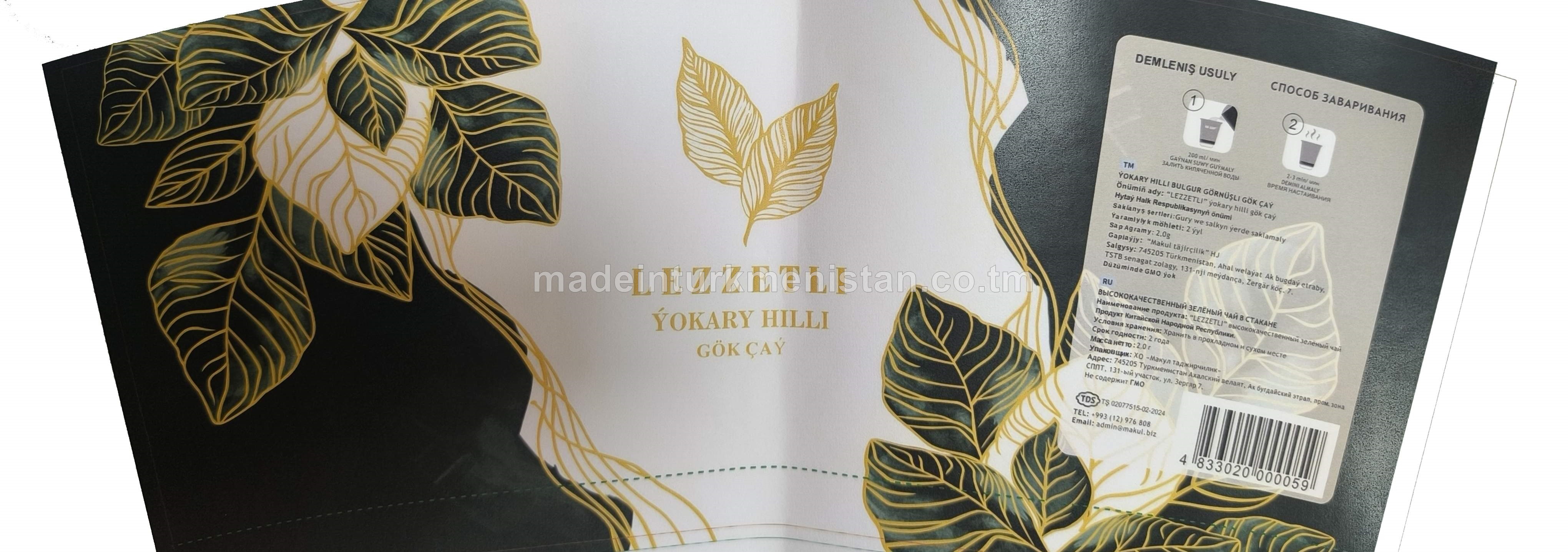 "LEZZETLI" Bulgurdaky ýokary hilli iri ýaprakly gök çaý (Hytaý Halk Respublikasynyň önümi)