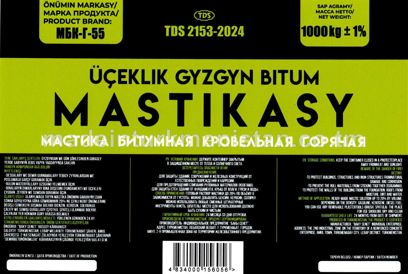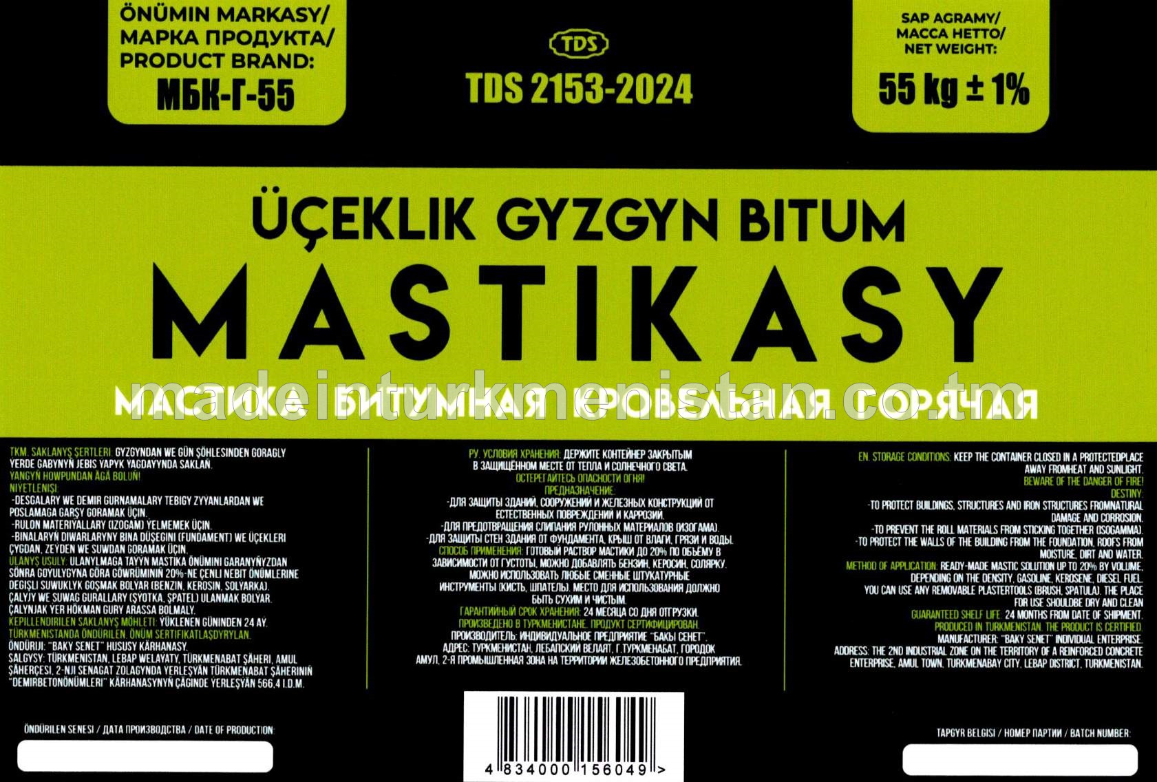 Üçeklik gyzgyn bitum mastikasy. Markasy МБК-Г-55