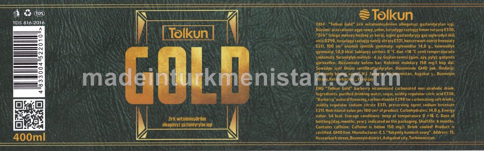 "Tolkun Gold" Zirk tagamly alkogolsyz gazlandyrylan içgi