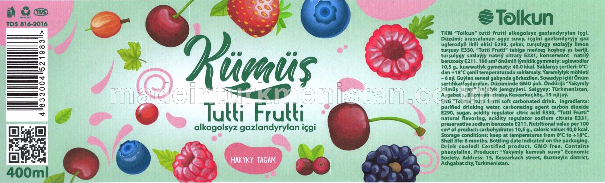 "Kümüş" Tutti Frutti alkogolsyz gazlandyrylan içgi