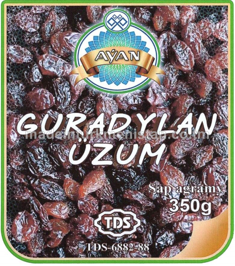 Guradylan üzüm gögümtil gara reňkli. Ýokary hilli