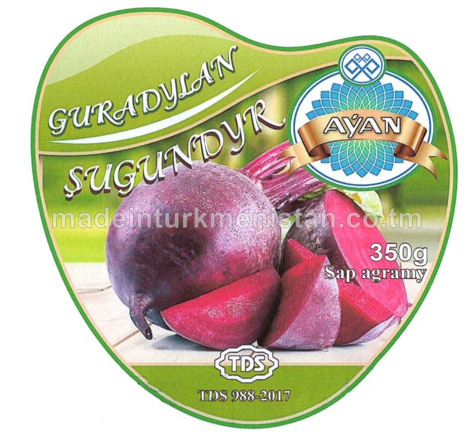 Guradylan üzüm. Açyk gyzylymtyl reñkli. Ýokary hilli