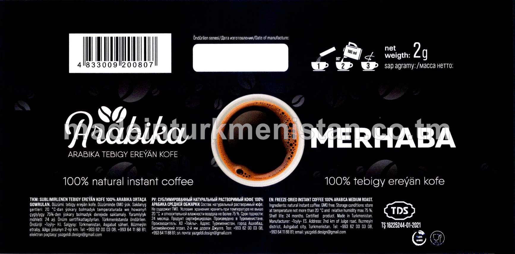 Sublimirlenen tabigy ereýän kofe Arabika - Robusta ortaça gowurlan "Markow Kofe"