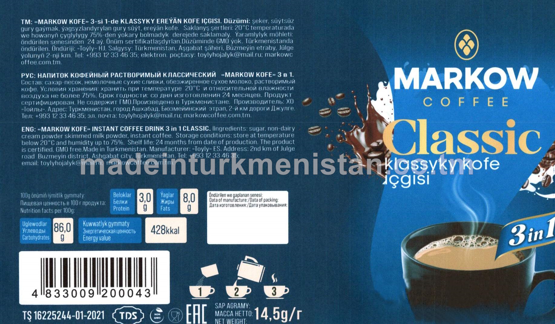 "Markow coffee" 3-si 1-de klassyky ereýän kofe içgisi