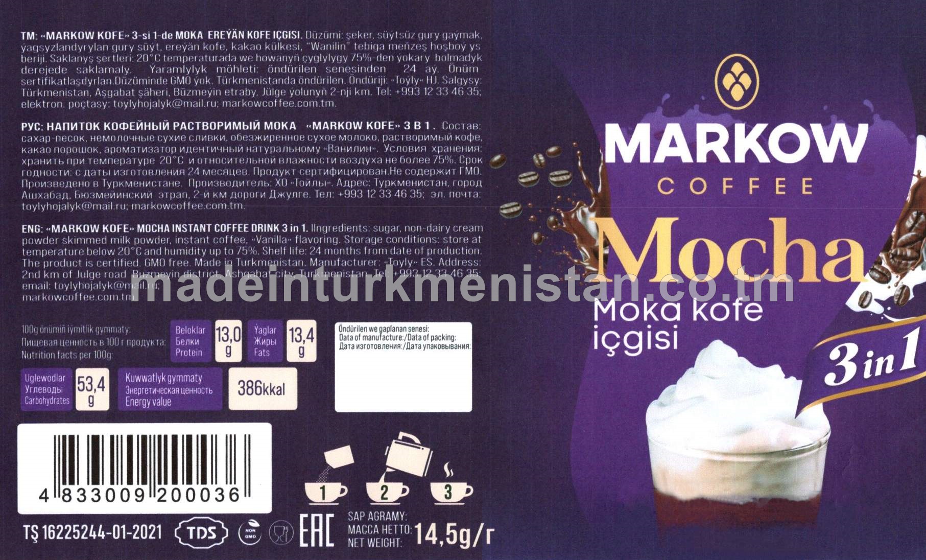 "Markow Coffee" 3-si 1-de moka ereýän kofe içgisi