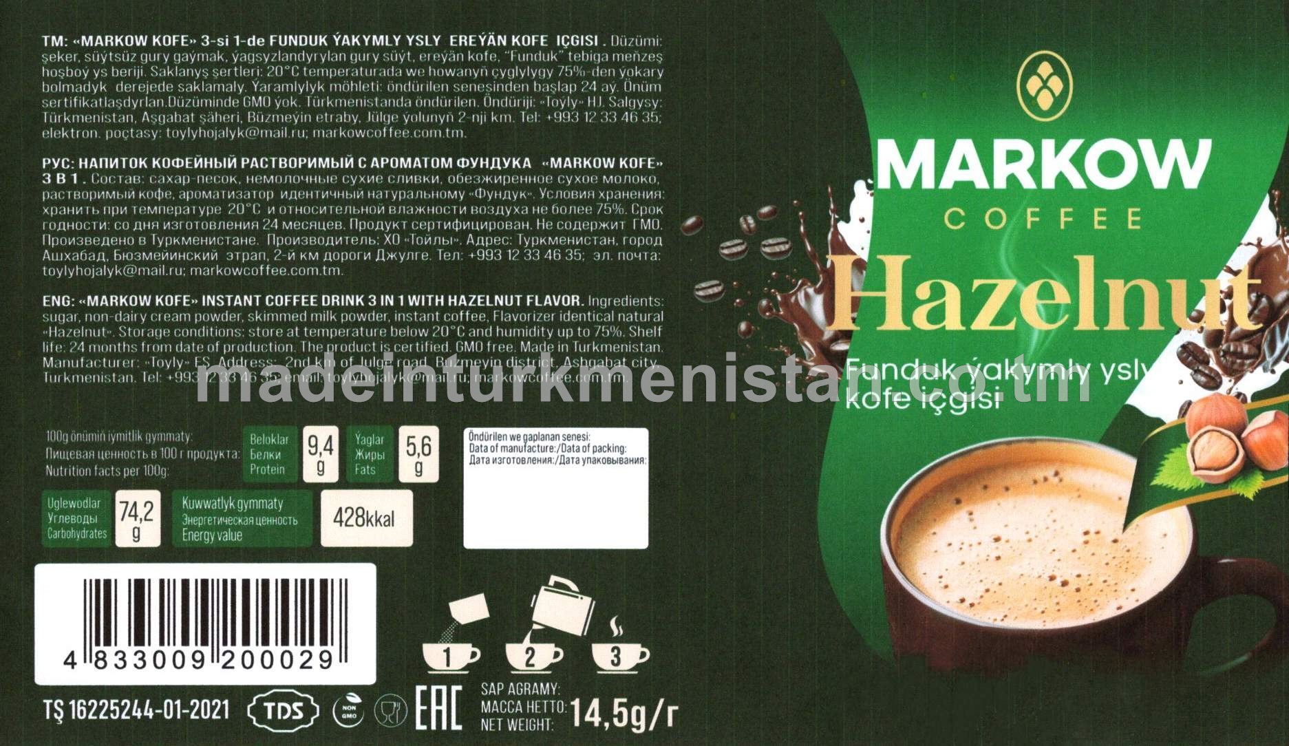 "Markow Koffee" 3-si 1-de funduk ýakymly ysly ereýän içgisi