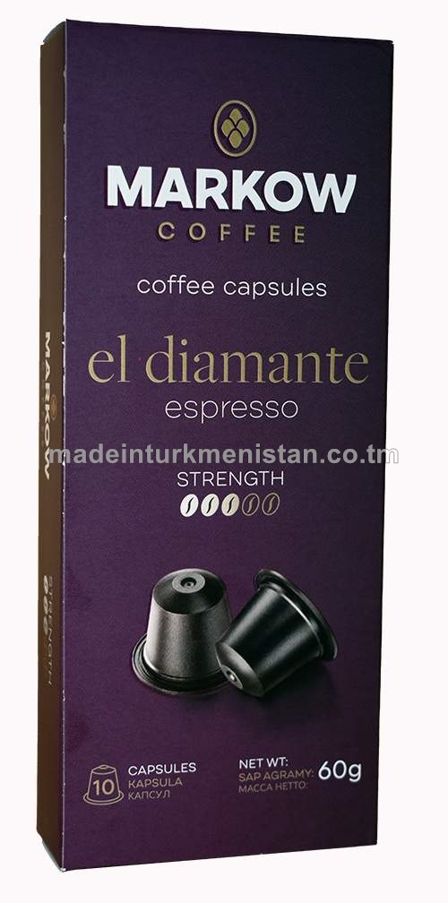 Intense espresso üwelen kofe kapsulada ortaça gowurlan Markow Coffee (10 sany)