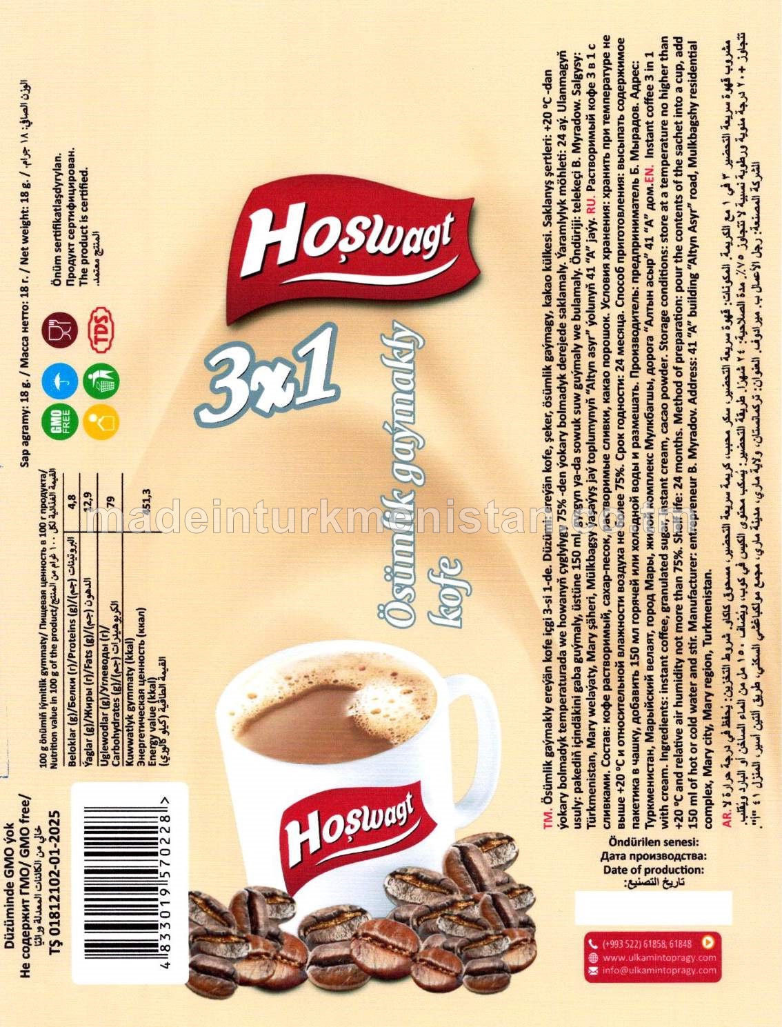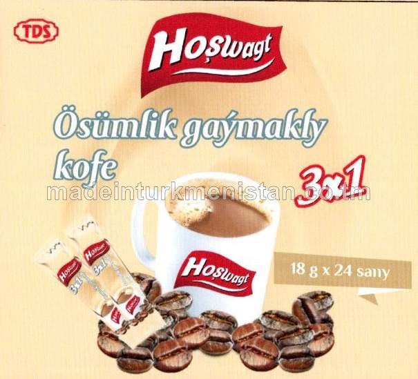 Tokaý hoz tagamly ereýän kofe içgi 3-si 1-de