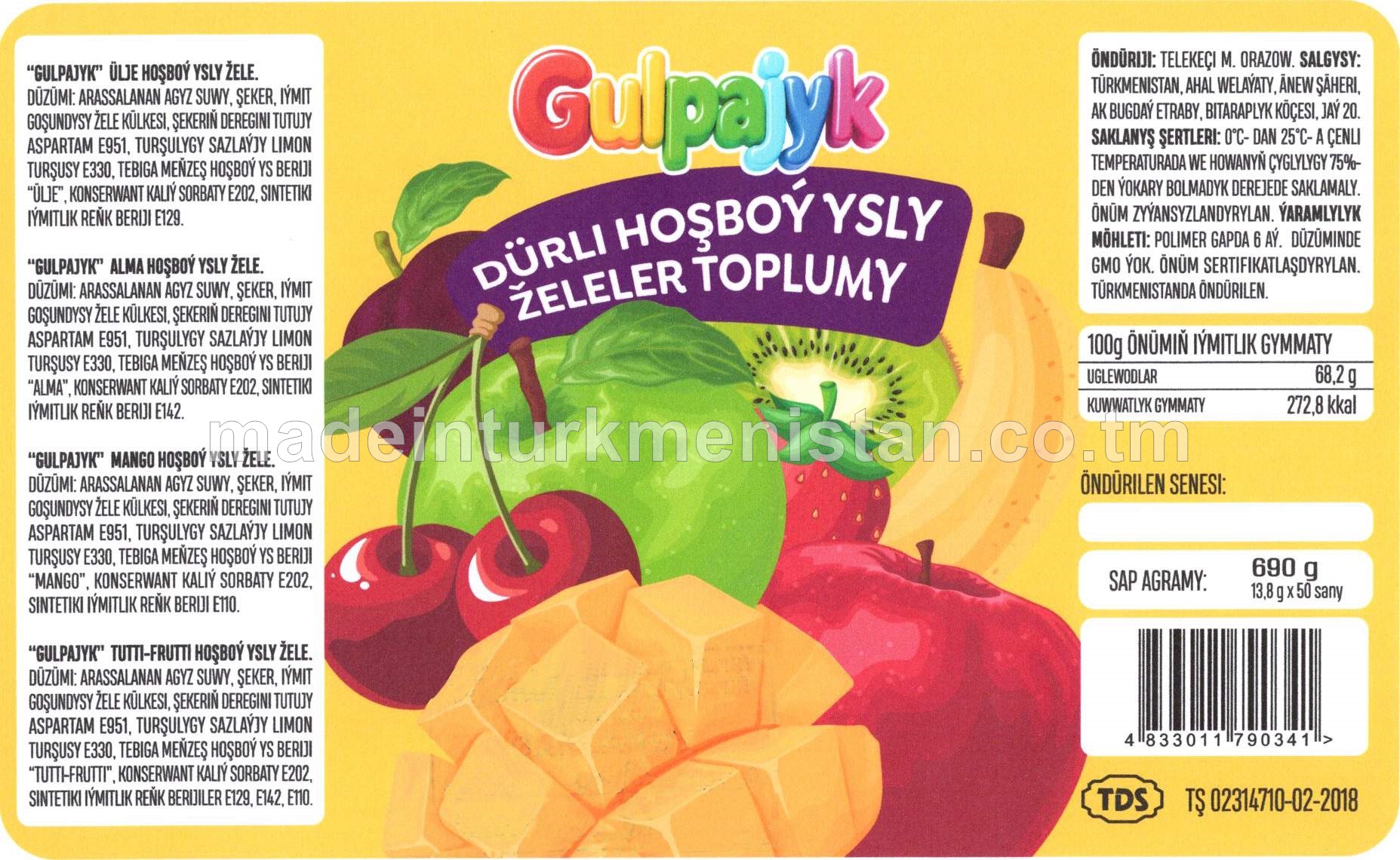 Dürli hoşboý ysly želeler toplumy (banan, alma, mango, ülje, tutti-frutti)