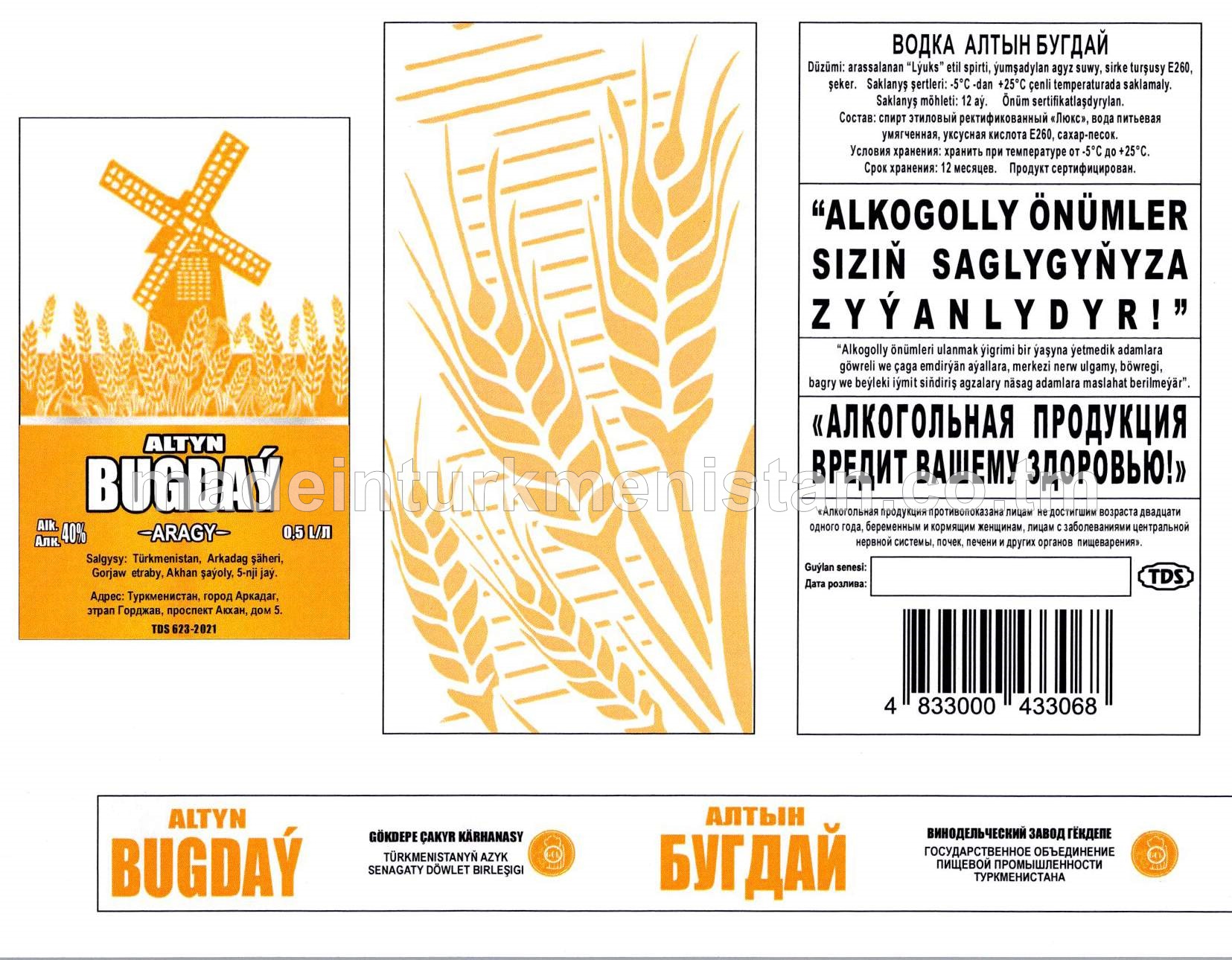 "Altyn bugdaý" aragy. Alk:40%