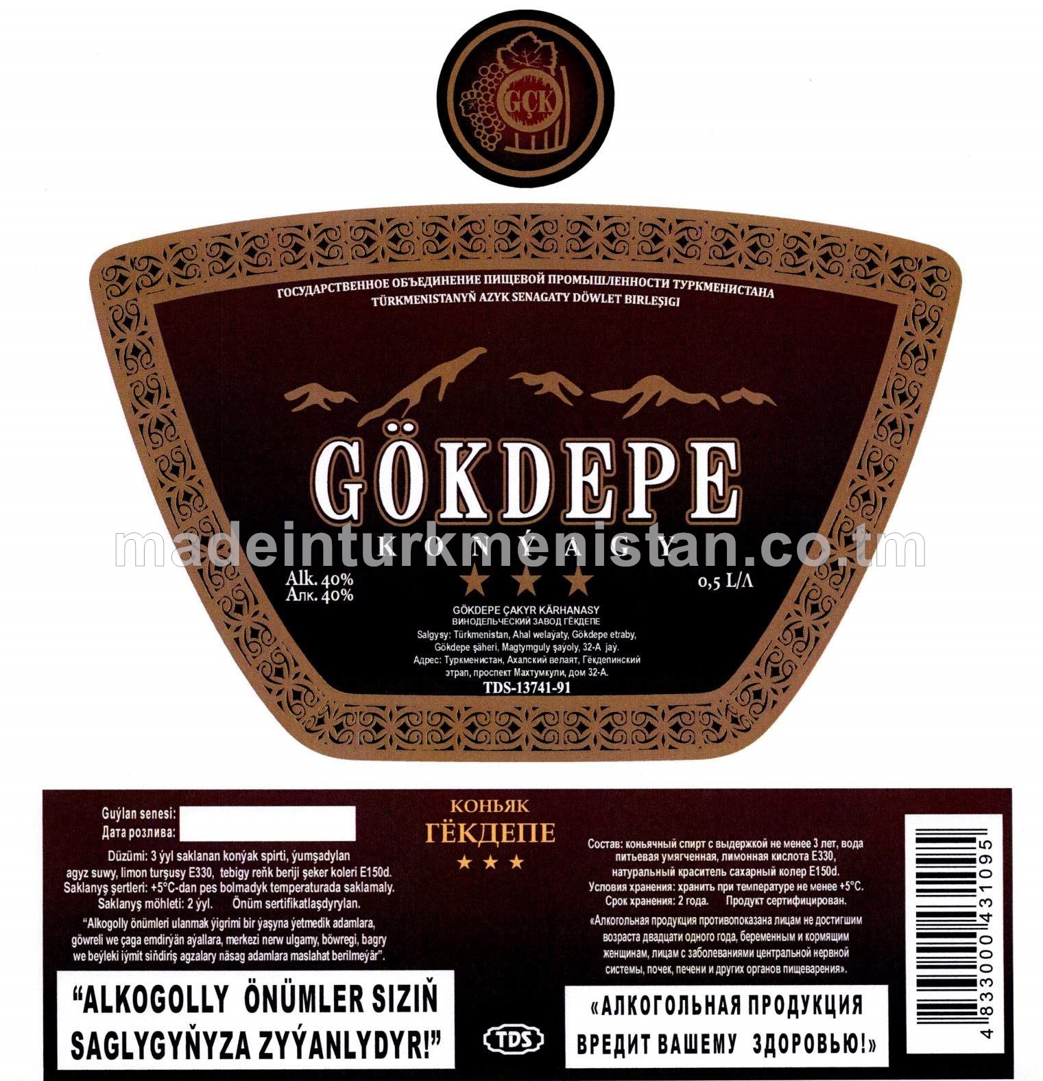 "Gökdepe" konýagy. Alk:40%
