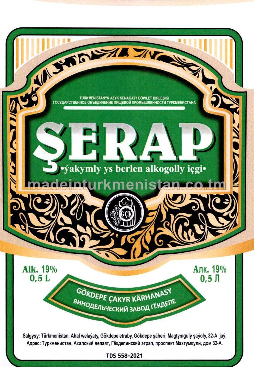 "Şerap" ýakymly ys berlen alkogolly içgi. Alk:19%