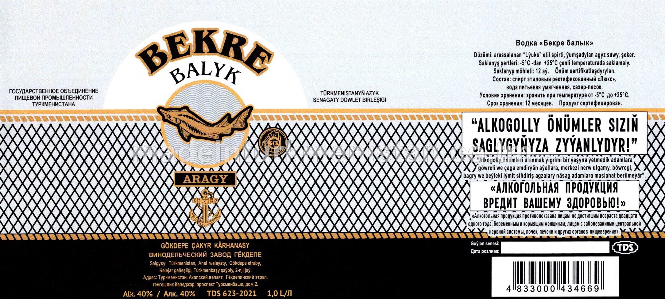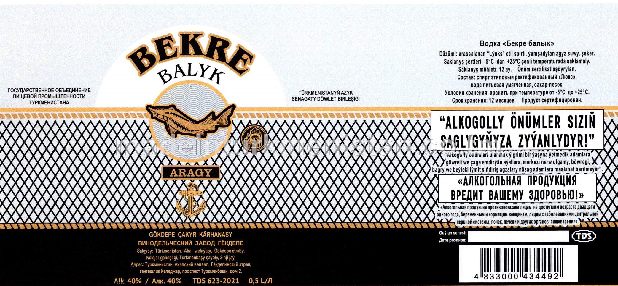 "Bekre Balyk" aragy. Alk.40%
