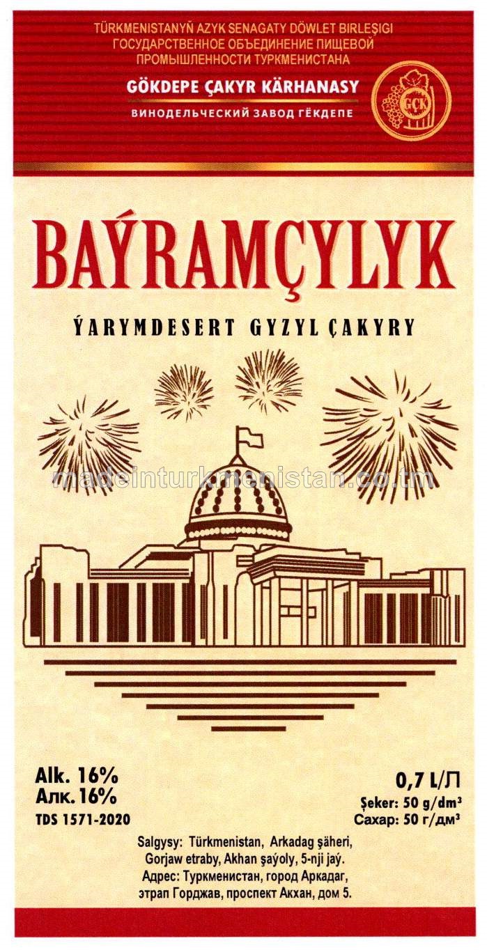 "Baýramçylyk" ýarymdesert gyzyl çakyry. Alk:16%