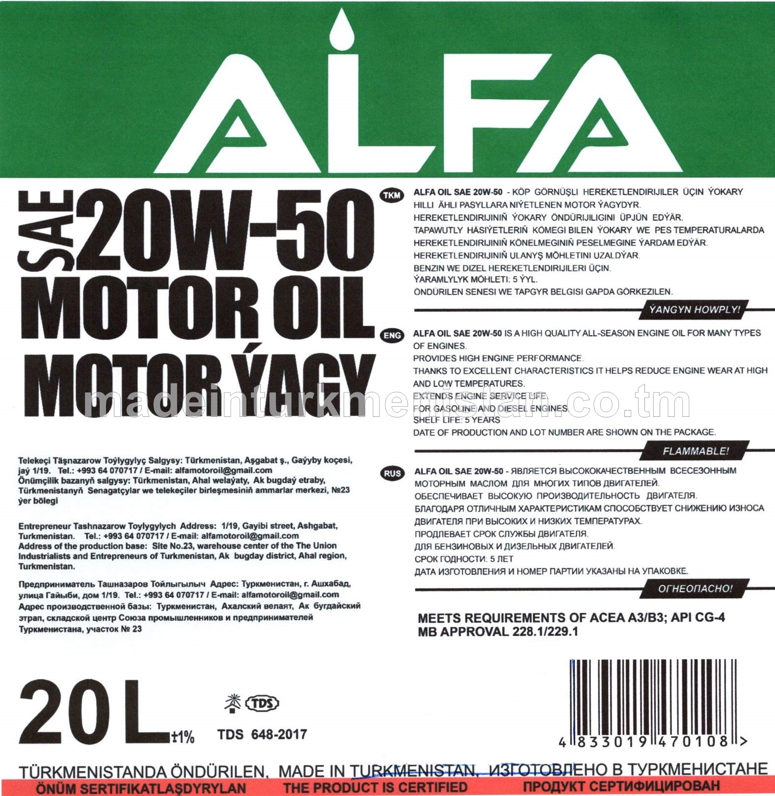 Motor ýagy SAE 20W-50
