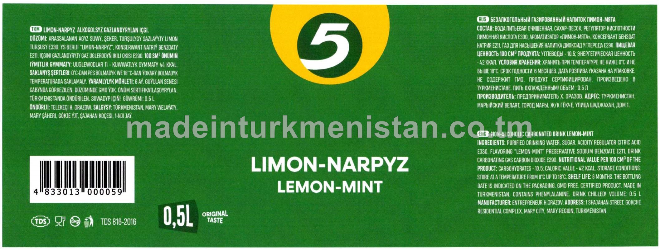 Limon-narpyz alkogolsyz gazlandyrylan içgi