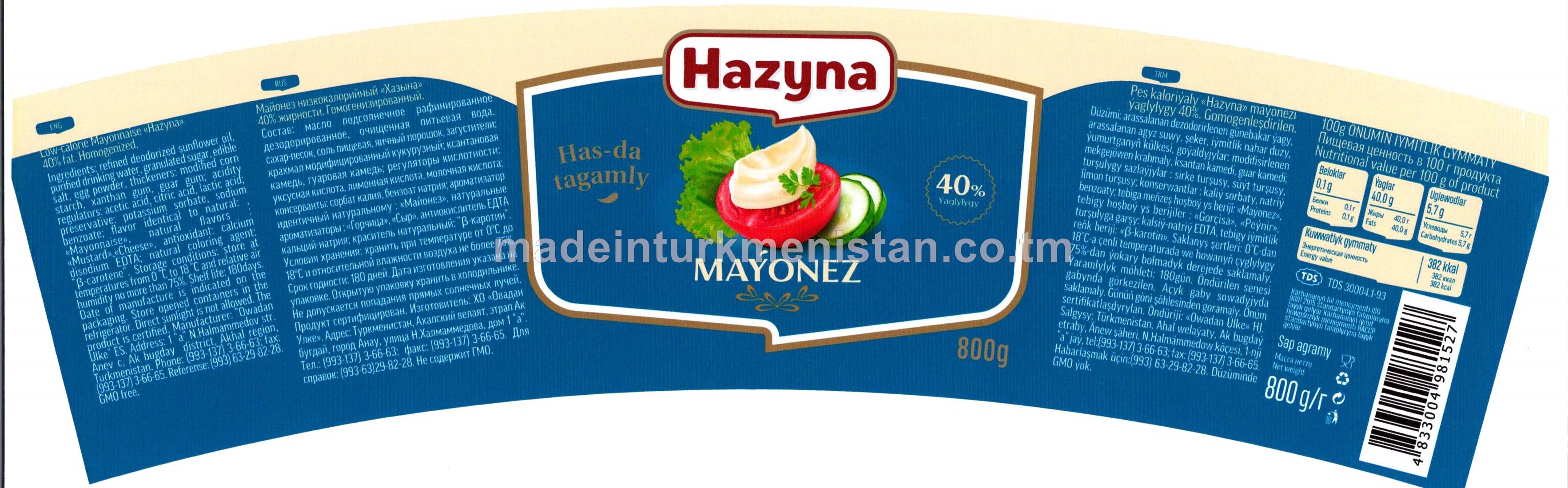 Pes kaloriýaly Hazyna maýonezi. Ýaglygy 40%