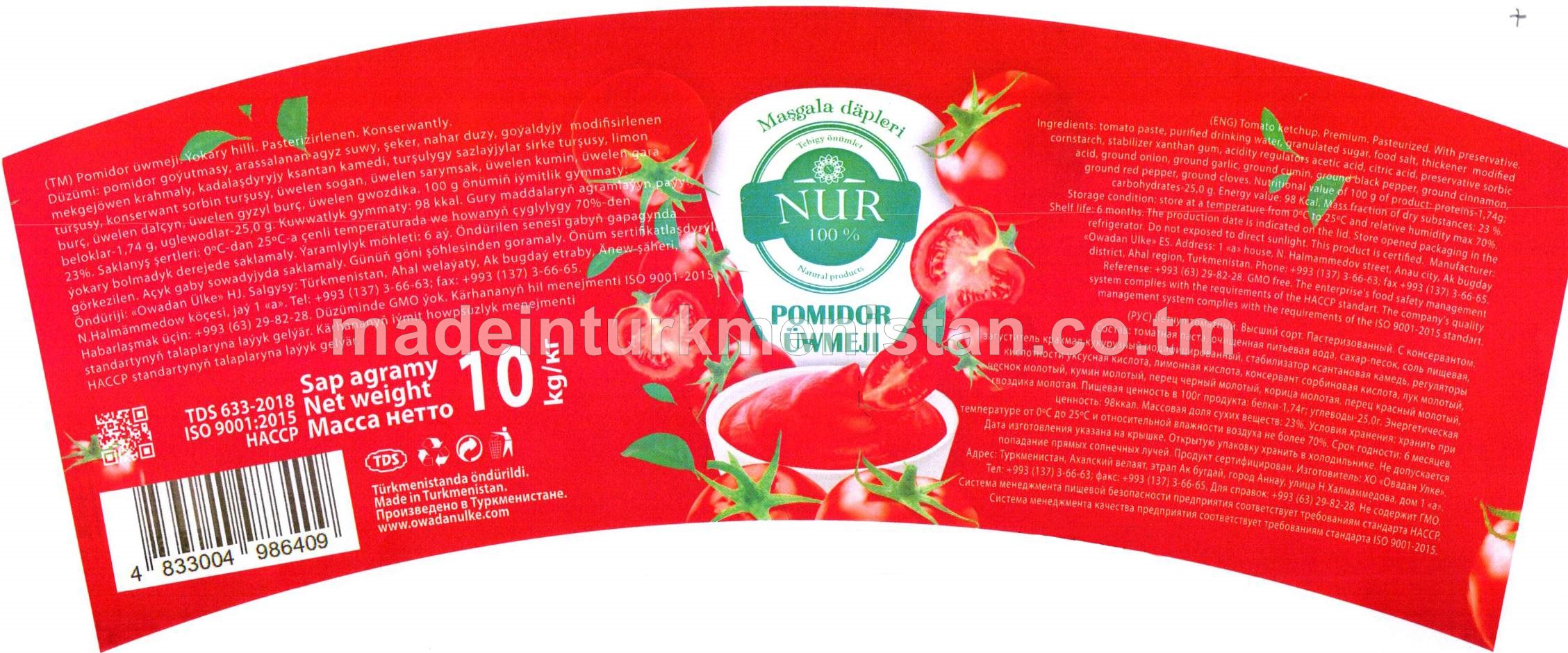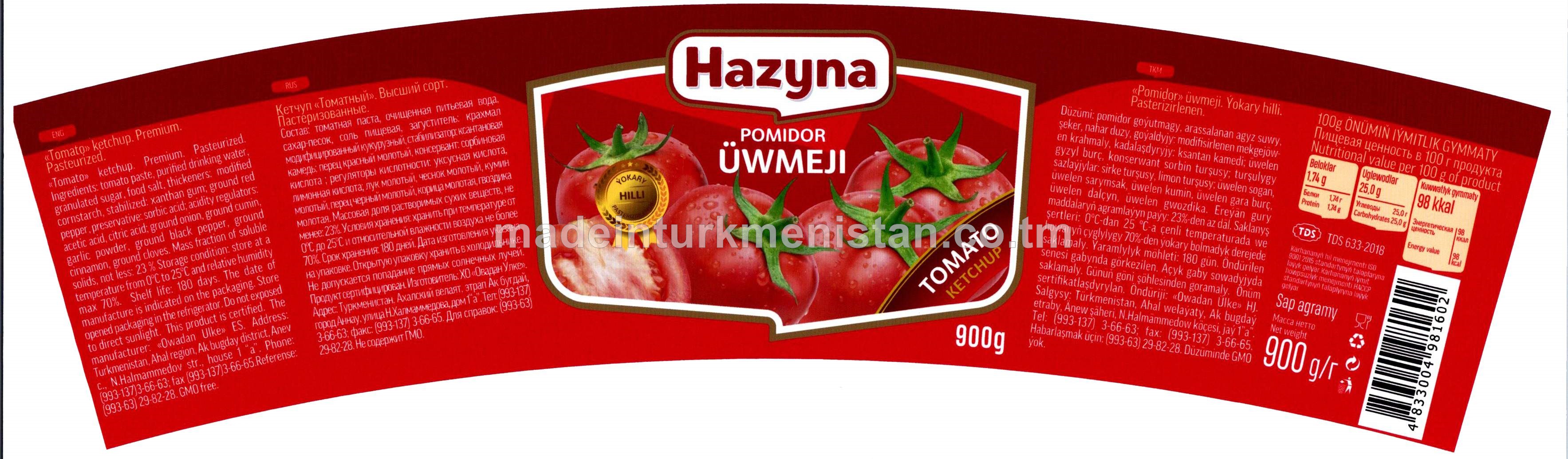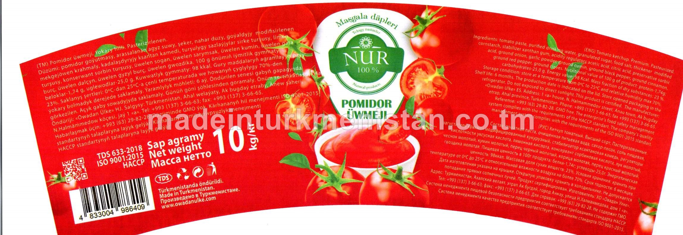 «Pomidor» üwmeji. Ýokary hilli. Pasterizirlenen.